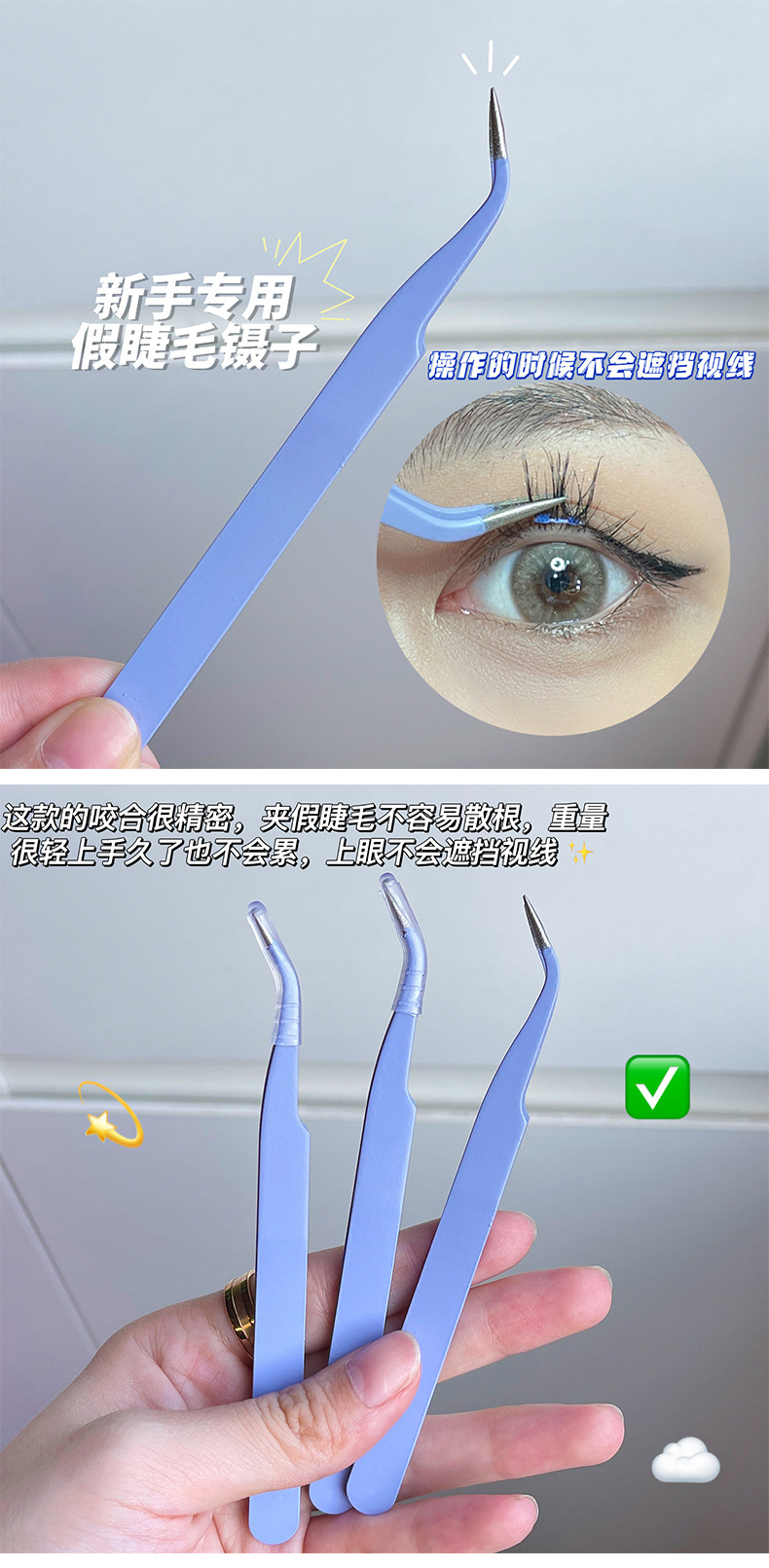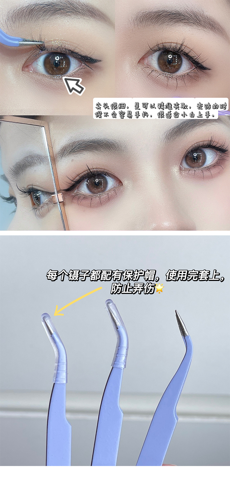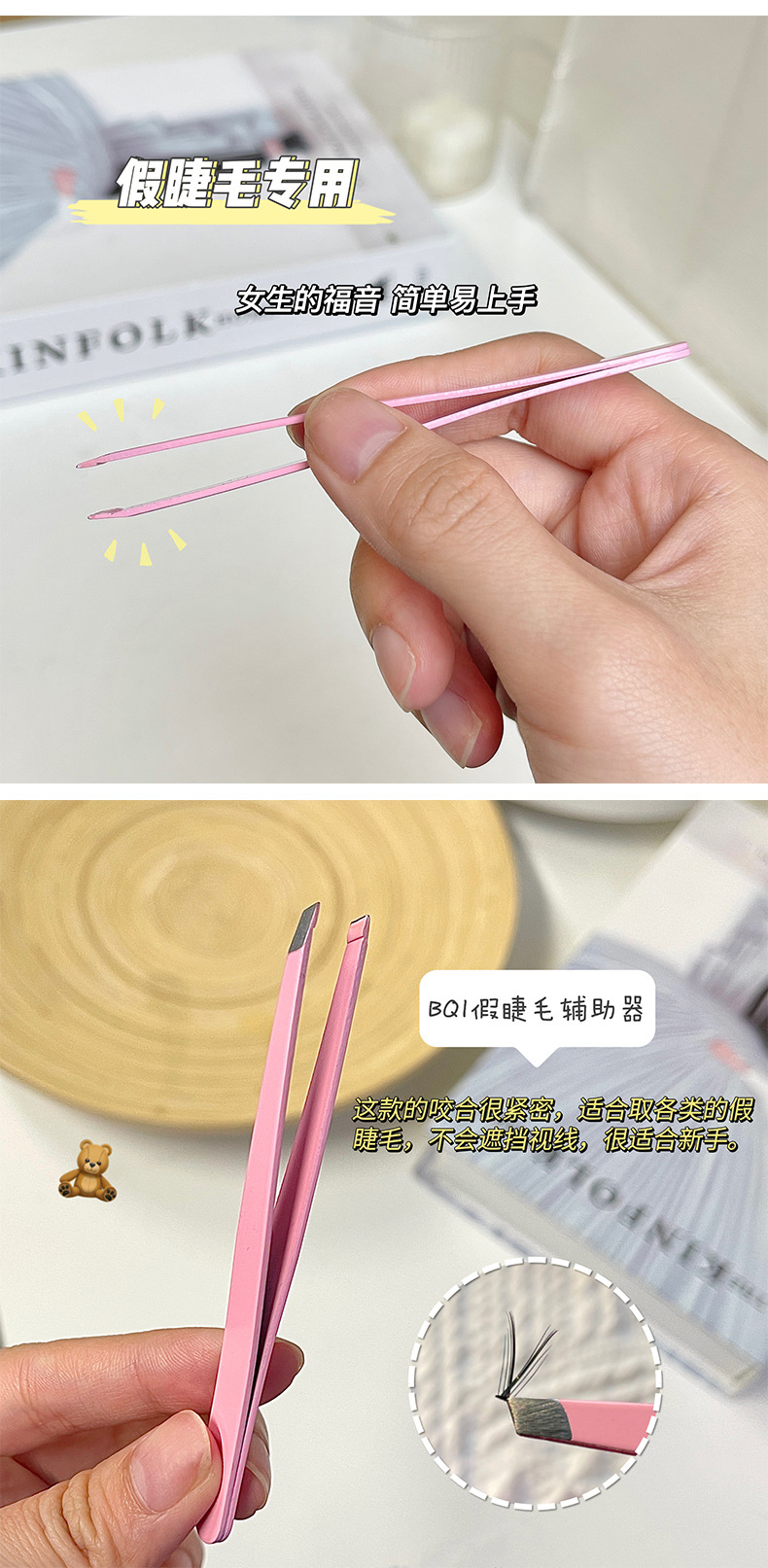 BQI伪のまつげピンセット金羽クリップ初心者まつげ接ぎ木ツールステンレス钢ラウンドヘッドまつげ専用ピンセット
