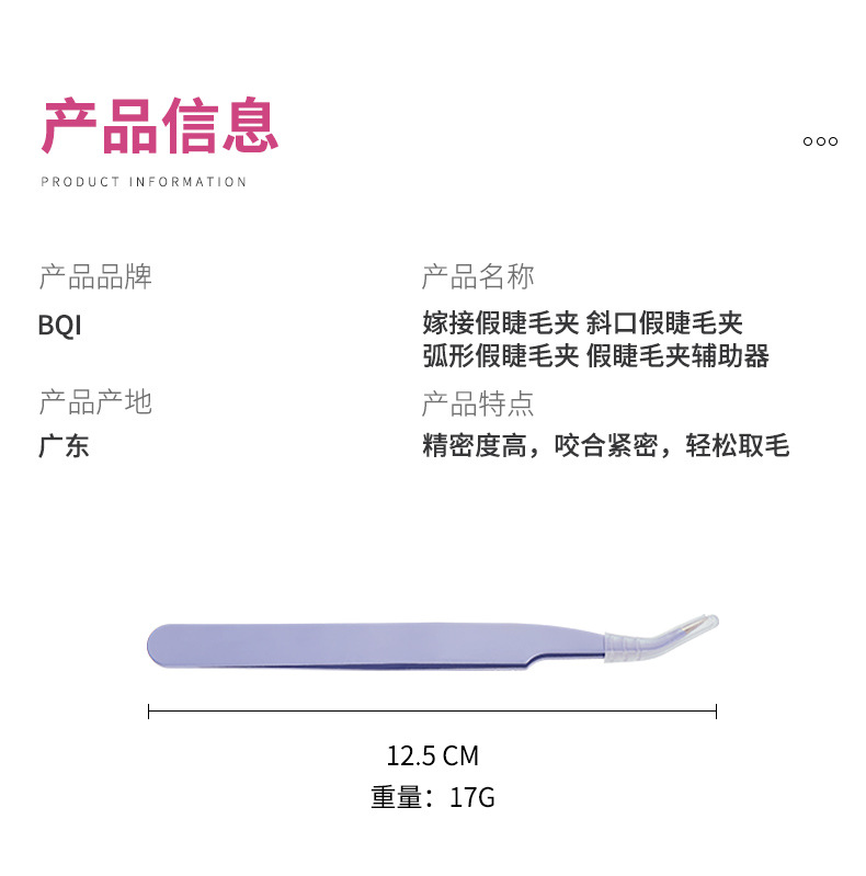 BQI 斜めグラフトつけまつげカーラーつけまつげアシスタントステンレス鋼眉毛トリミングひげピンセットクロスボーダーメイク
