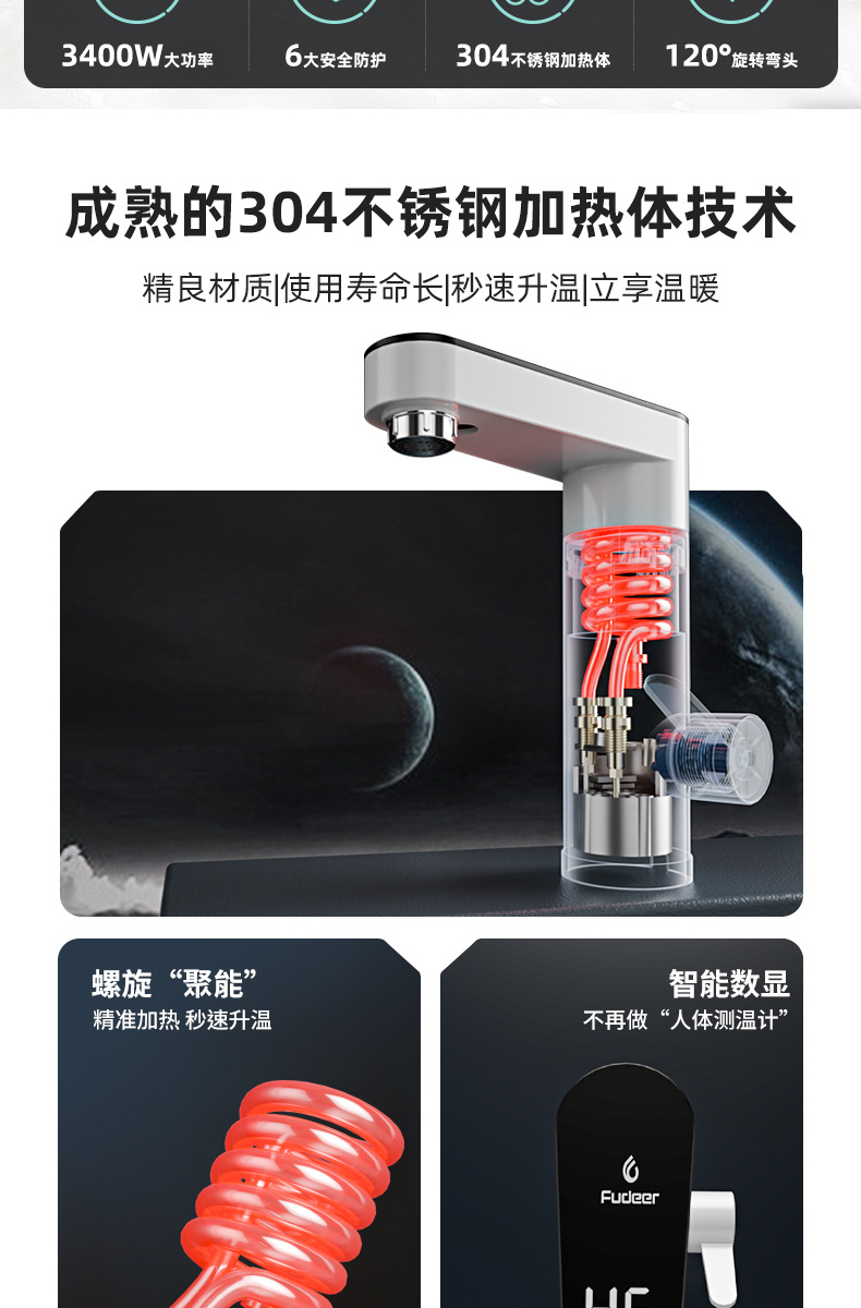 弗德尔电热水龙头速热即热式加热厨房卫生间热水器家用厨宝过水热