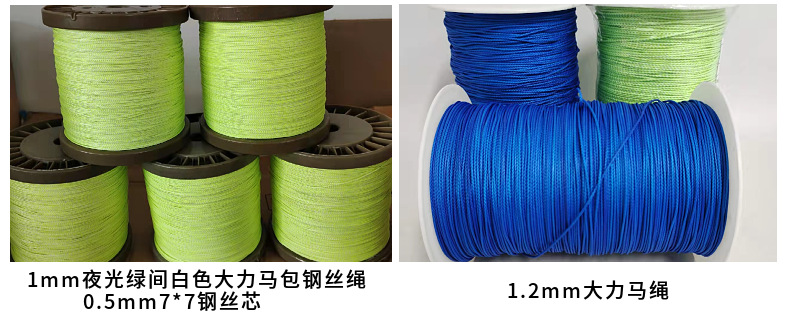 夜光鋼線鉄板フックロープ欧娜鋼線柔らかい90lb引っ張り力馬夜光ロープ7*7鋼線芯