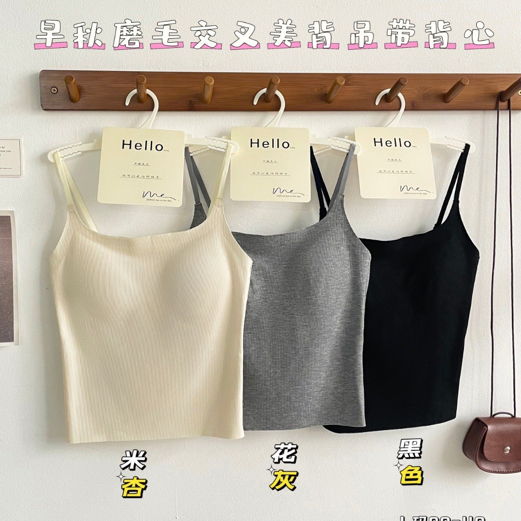 ベルベットベスト871 # 秋の新作、美背見せショート丈細肩紐トップス、鎖骨見せノースリーブブラウス(レディース)