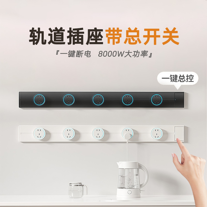 欧维森明装壁挂式可移动电力滑动一键断电电源插座防触电轨道插座