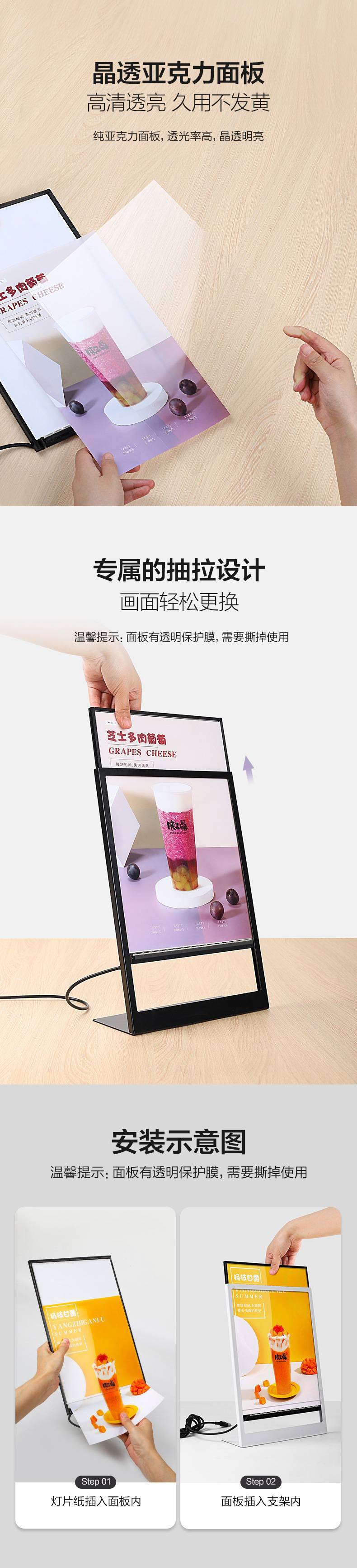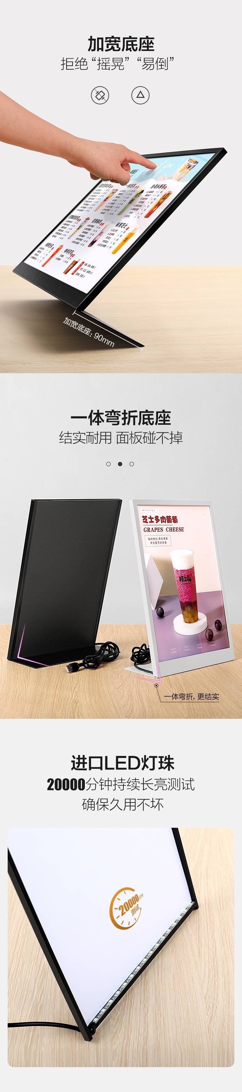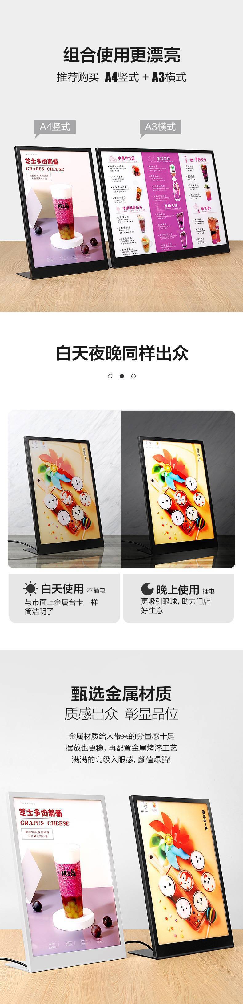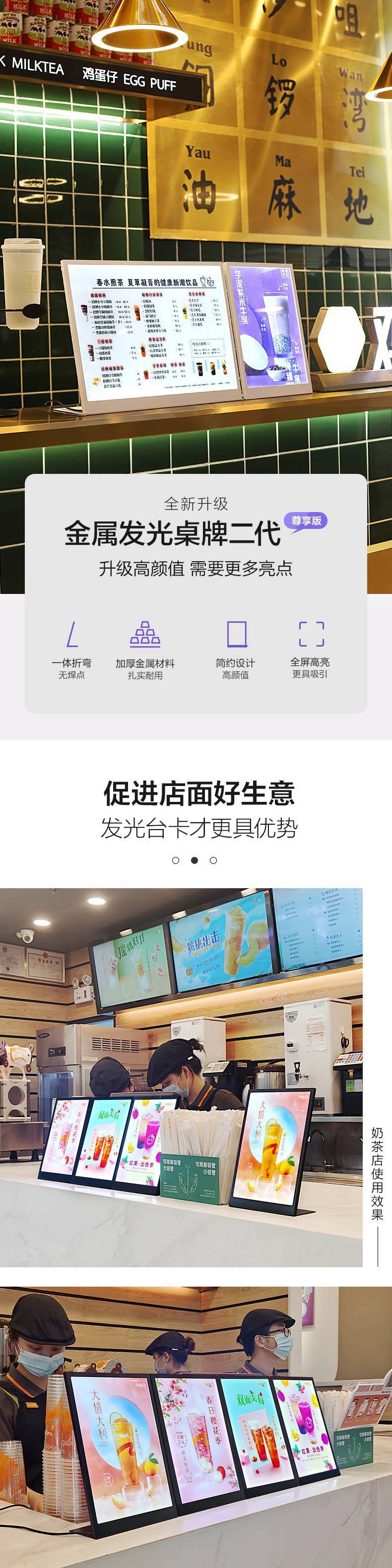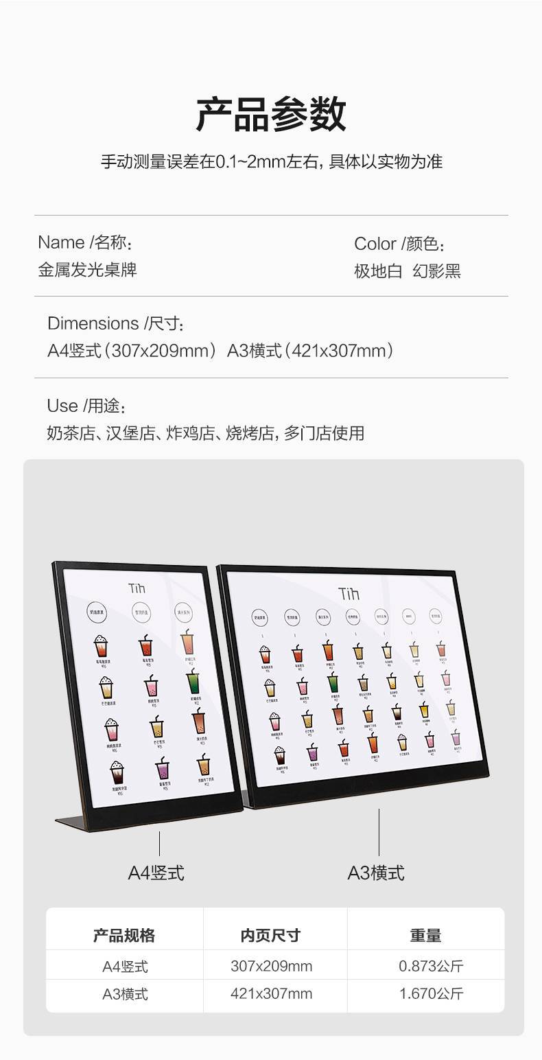 A3ミルクティー店発光メニューカードa4金属デスクトップカードカフェ軽食価格表立ブランド注文ランプハウス