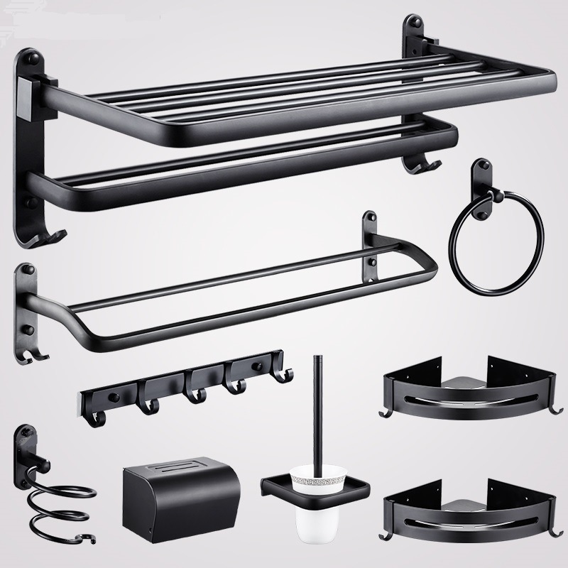 水晶の浴室の金属のつや消しの黒色の浴室の部品のセットのタオルの竿の衛生紙の棚のタオルの環の服の帽子のフック4