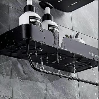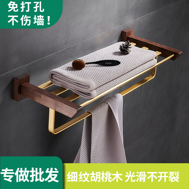 穴を開けないトイレの浴室の棚の浴室のセットの壁掛けの胡桃の木のバスタオルの棚のトイレの角の棚の金