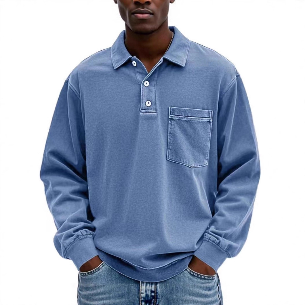 2025新款跨境亚马逊男士长袖衬衫休闲百搭简约宽松纽扣翻领polo衫