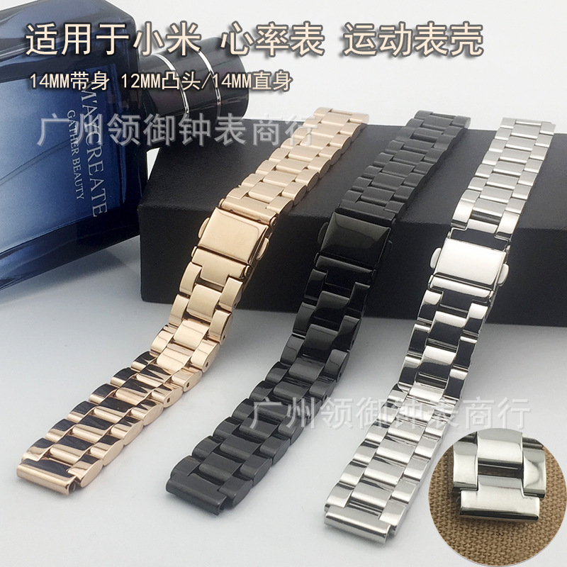 汎用miバンド米手環3/4/5ミラノニースソリッドバンド三珠ステンレス時計バンド