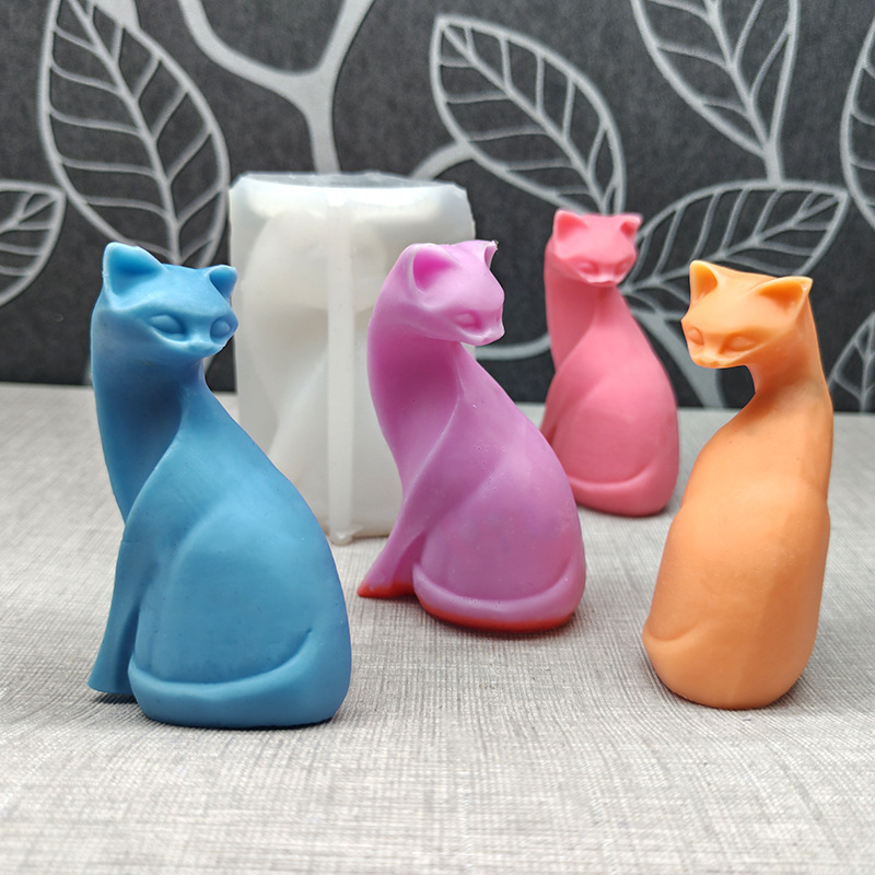 新しい彫刻は猫シリコン金型芸術香薫ろうそく手作り石膏猫ケーキ装飾金型を振り返る