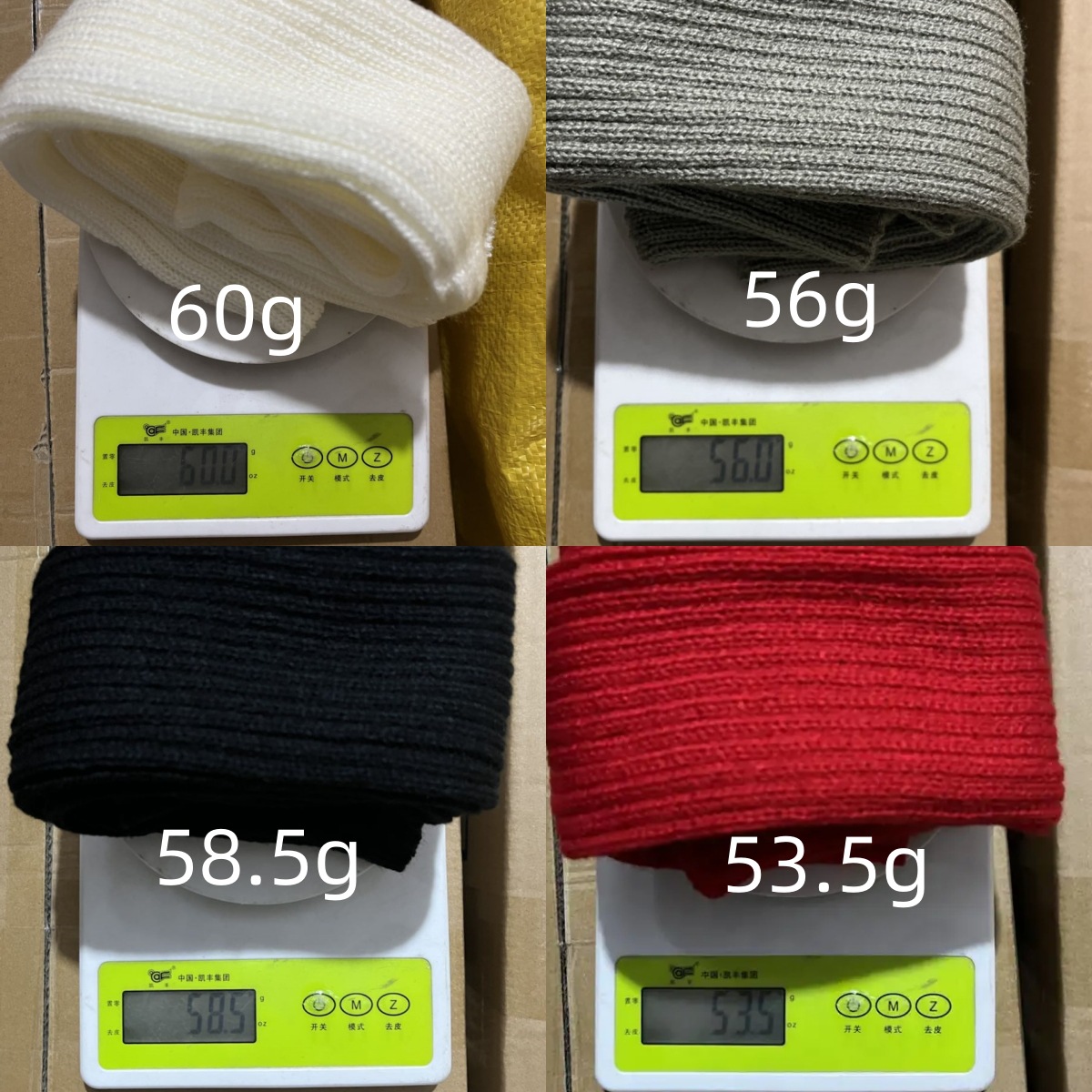 不同颜色克重不同,会有少许差距,袜子针数相同的,不同批次纱线产品会有少许差别,40厘米袜套裸袜克数在53-58g,都是正常的哦
