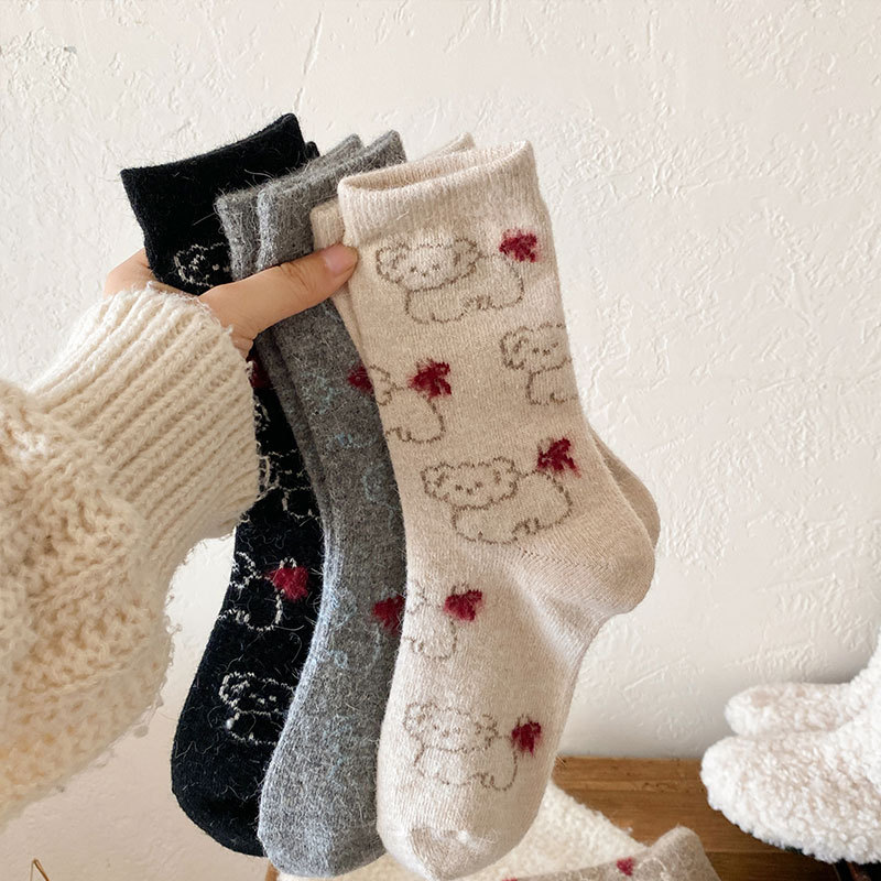 冬の新型の靴下の女性のウールの靴下の子供の中の筒の靴下は厚い保温の日本の蝶結びの靴下をプラスします。