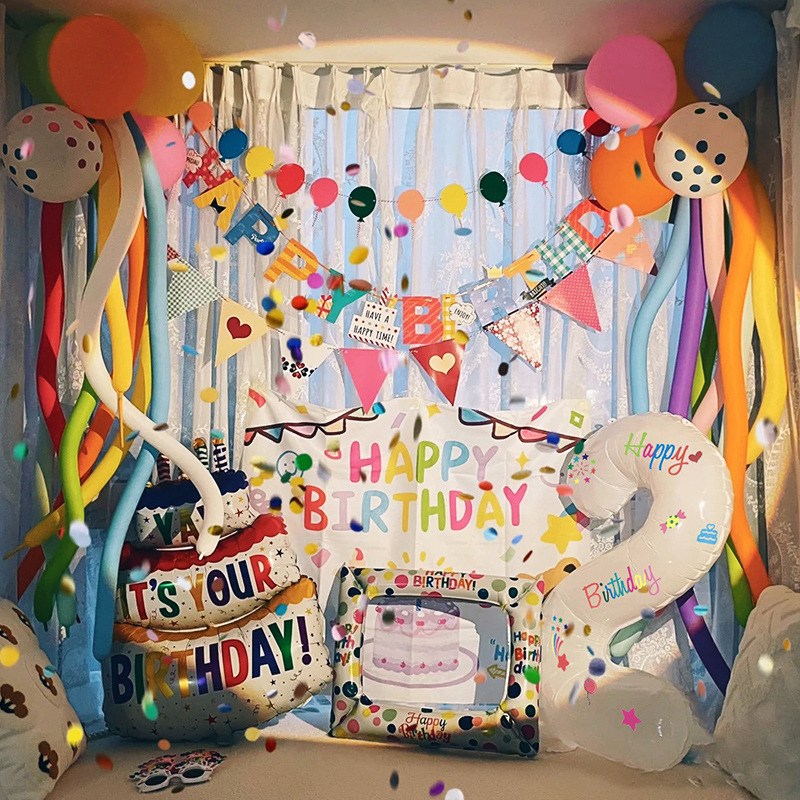 Ins三層カラーケーキアルミ膜風船子供歳誕生日写真道具装飾パーティー配置シーン