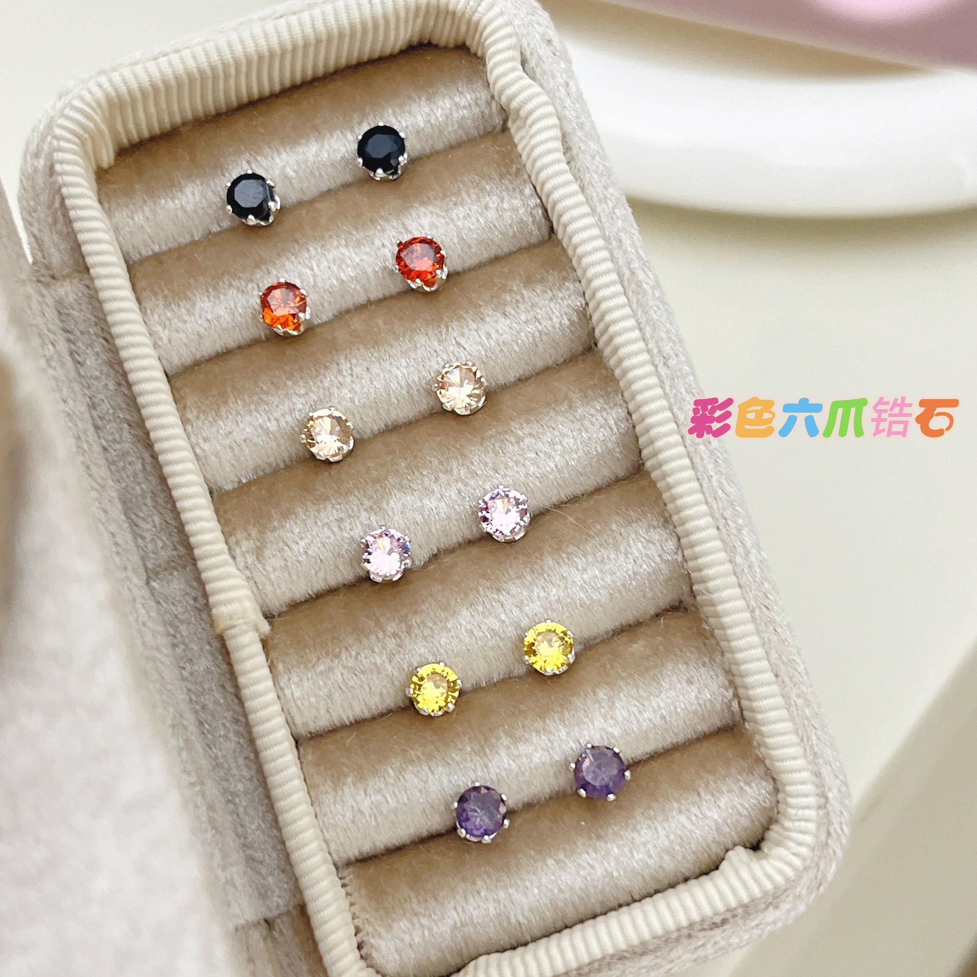 超フラッシュ六爪カラージルコンピアスシンプルでコンパクトで洗練されたminiイヤリング甘美なイヤリング女性