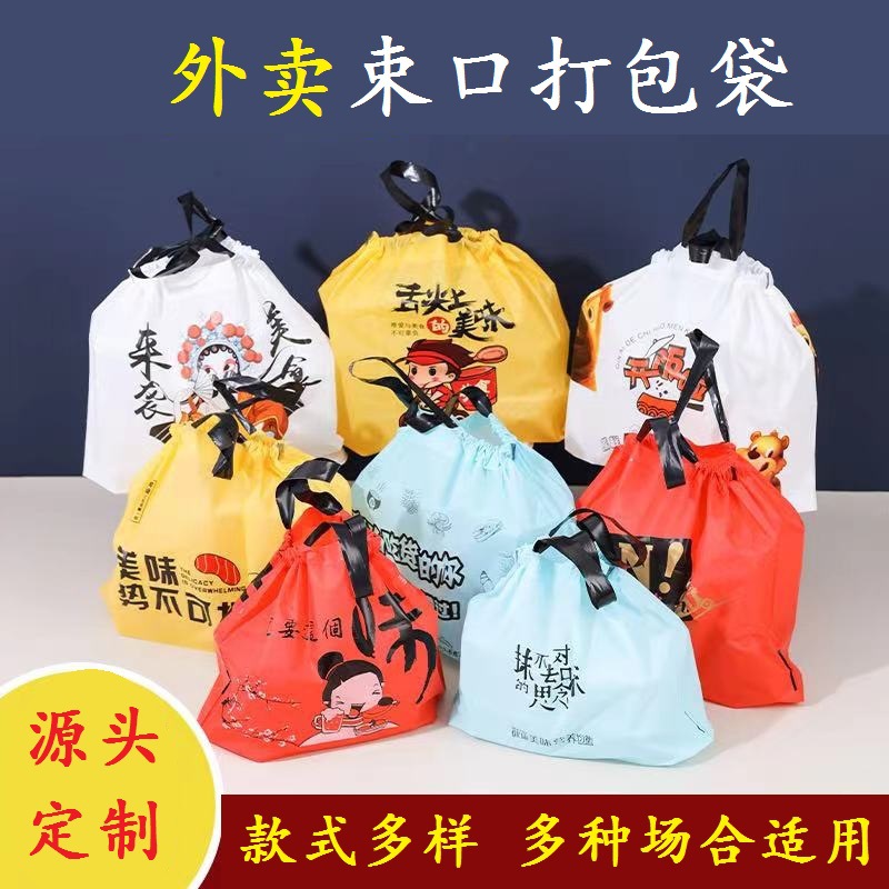 テイクアウト梱包束袋使い捨てプラスチック食品袋厚手巾着袋手提げ砂袋業務用袋卸売り
