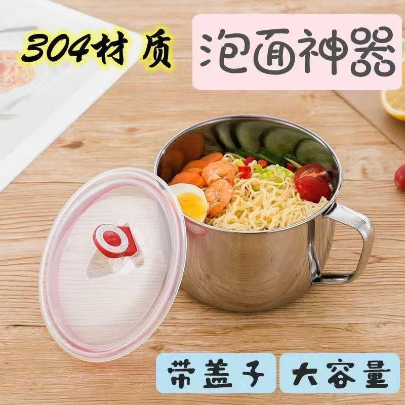 304ステンレス製蓋付きインスタントラーメンボウル、スープボウル、学生弁当箱、食堂用ボウル、学生・会社員用インスタントラーメンカップ