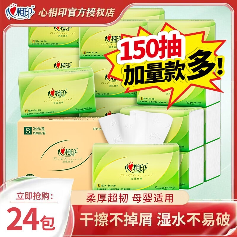 DT15150心相印茶語糸享シリーズ150抽出 * 24包三層プラスチック包装紙タオル抽出紙ナプキン