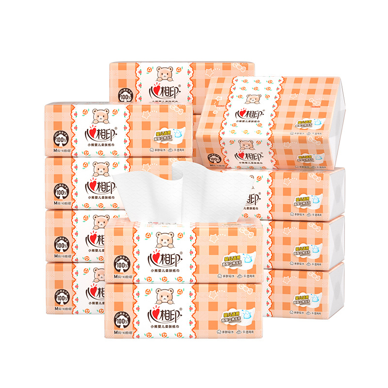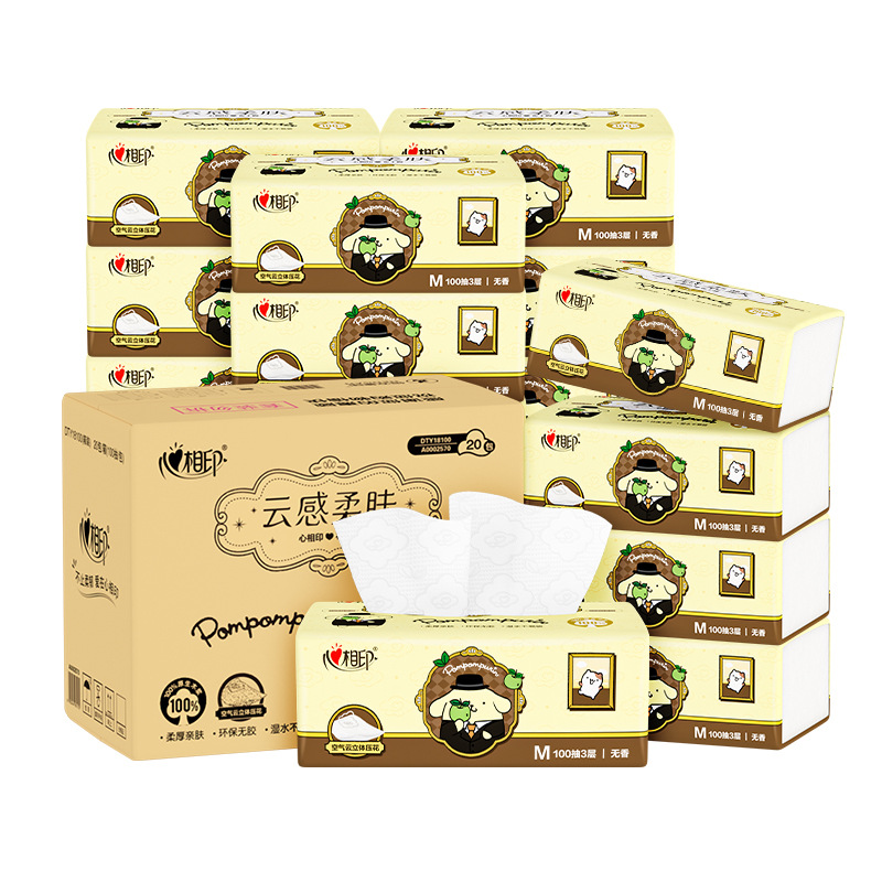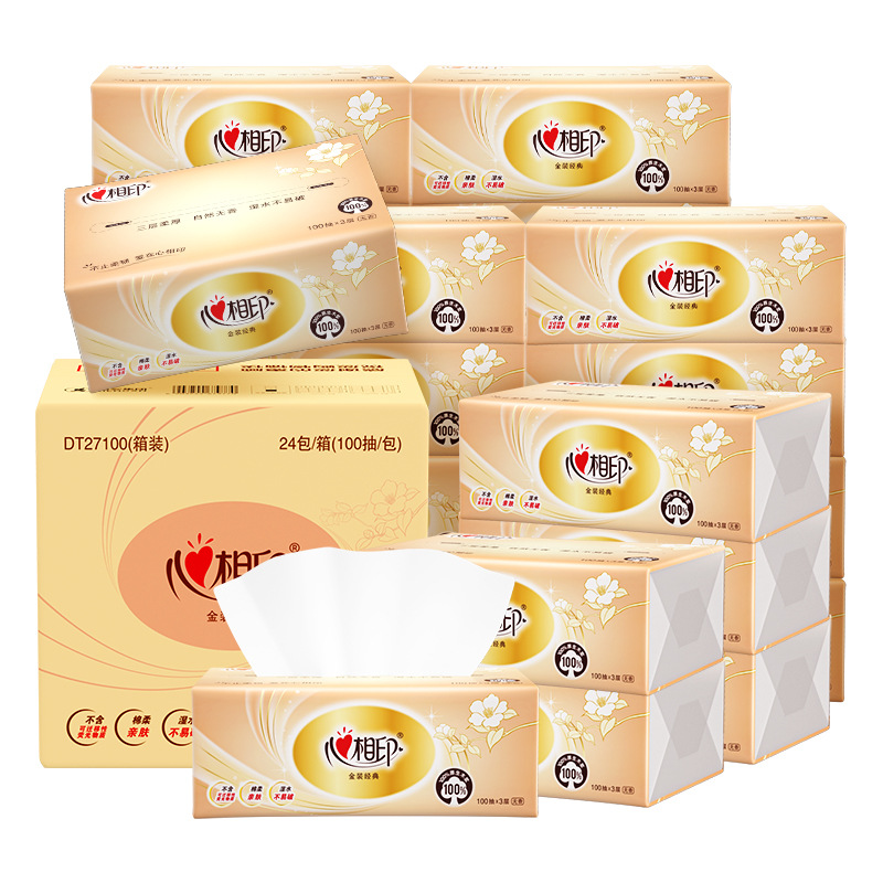 心香印100枚入り3層ティッシュペーパー家庭用全箱24パックプラスチック包装家庭用フェイシャルティッシュ引き出し式柔らかく肌に優しい