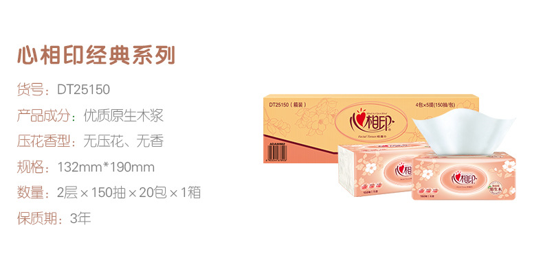 DT25150 (DT22150) Xinxiangyin クラシック 150 枚 2 層プラスチック包装ティッシュペーパー ティッシュペーパー ナプキン