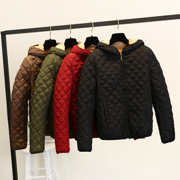 2022秋冬の新型韓国版は保温キルティング綿の刺繍を厚くして、小さい格子の綿の服の女性の子羊の毛のコートの女性を修理します。