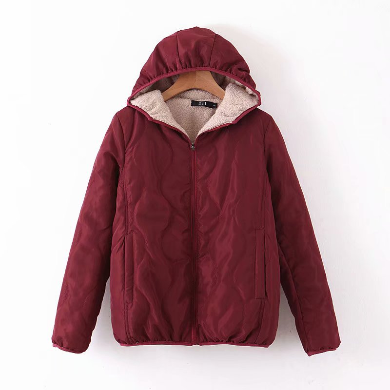 国境を越えて人気の2025秋冬新作韓国版無地フード付きルーズコットンコート、女性用厚手ベルベット痩身コットンジャケット