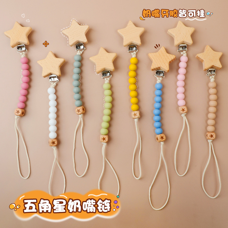 SHIEN 新しいベビーブナ材おしゃぶりクリップおしゃぶりシリコーンおしゃぶりおしゃぶりチェーンレーザー五芒星
