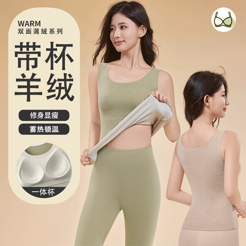 羊绒蚕丝德绒保暖背心女冬季加绒加厚无痕内衣自发热打底保暖上衣
