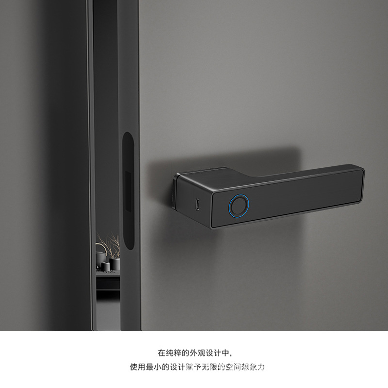 黒室内寝室シンプルなドアロック亜鉛合金指紋ロック木製ドアロック家庭用ハンドルロック