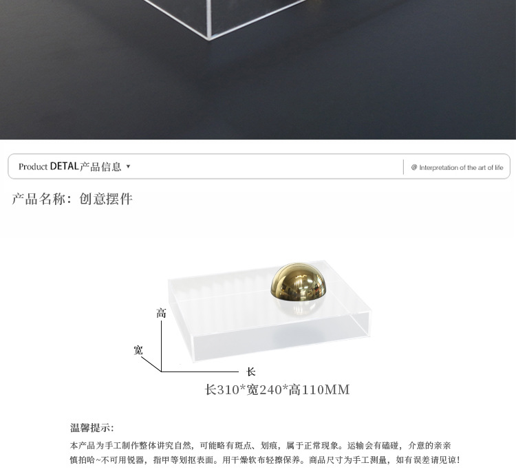 現代の軽い豪華な透明アクリルカバーの置物ジュエリー展示箱長方形の工芸品の手は防塵カバーを作ります。