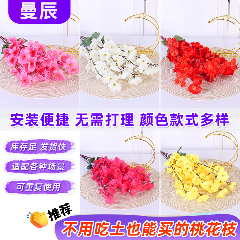 模擬桃の花の枝 7 枝 9 枝桃の花屋内リビングルームディスプレイ花造園プロジェクト装飾造花シルクフラワー桃の花