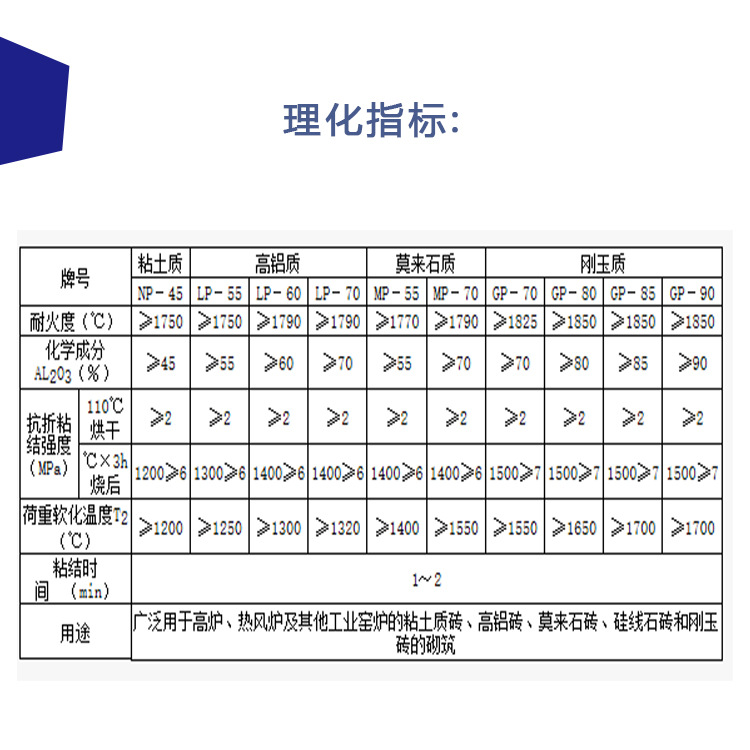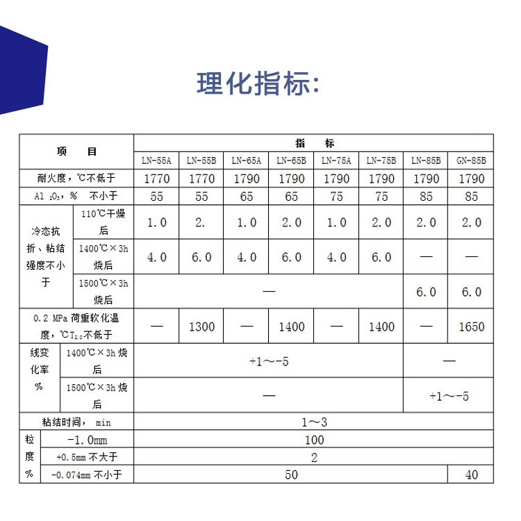 (一).高铝质耐火制品:具有较高的耐火使用温度(1200℃~1450℃)、高荷重软化温度、低蠕变性,广泛应用于陶瓷、电子、磁性材料、稀土、荧光材料、玻璃、冶金等工业。