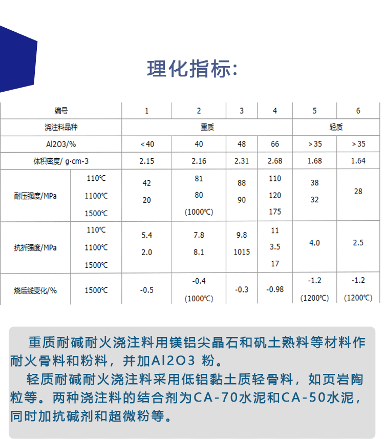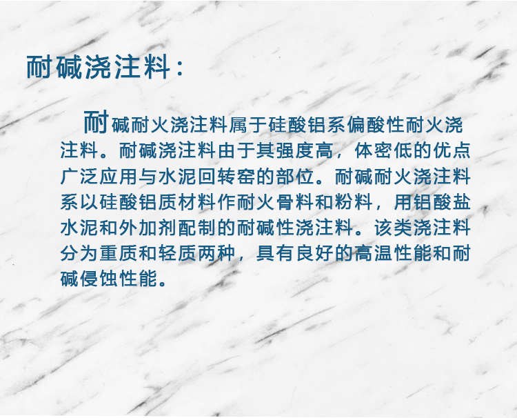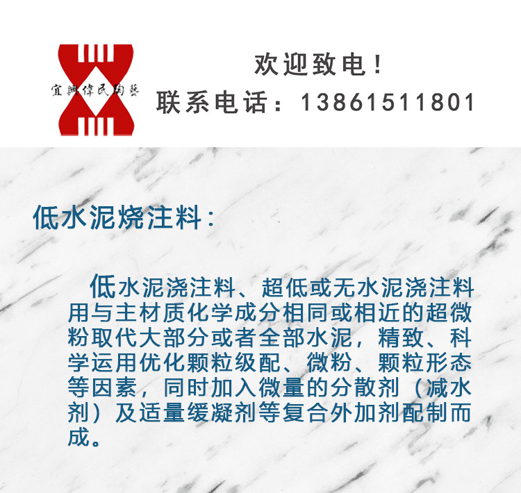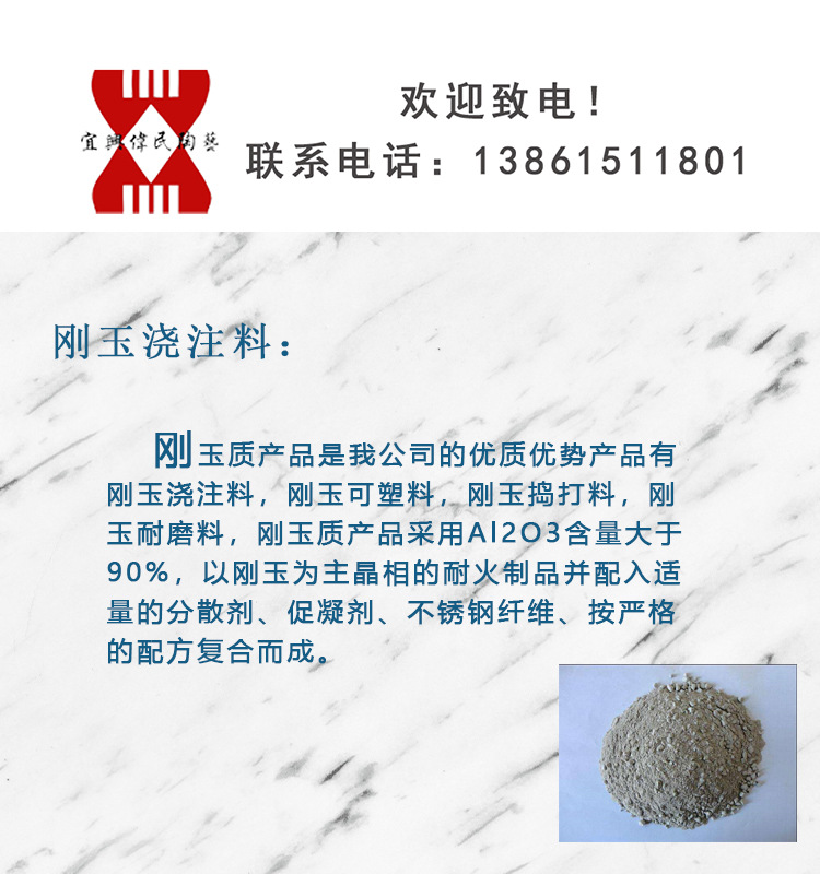 4)高温浇注料:1600℃刚玉浇注料、浇注料粉料、刚玉烧嘴、刚玉炉口砖、轻质浇注料、重质浇注料、耐磨浇注料、焚烧炉砌筑浇注料。