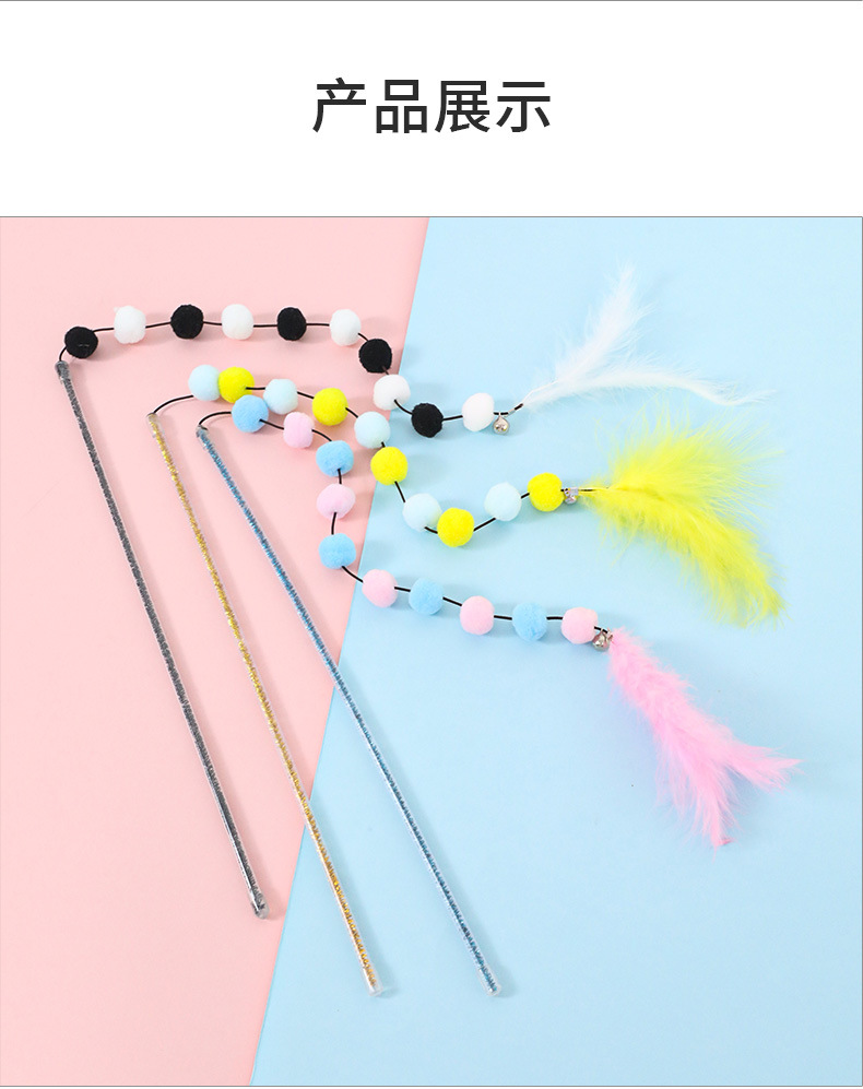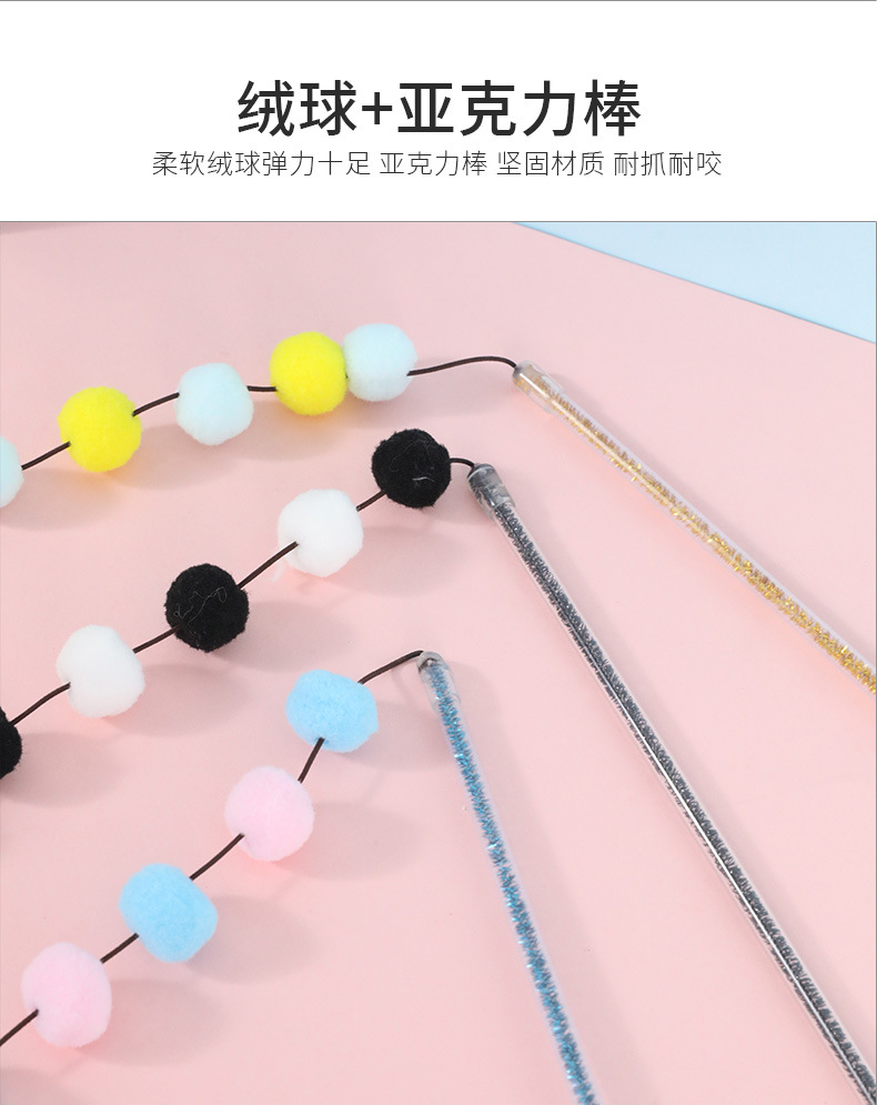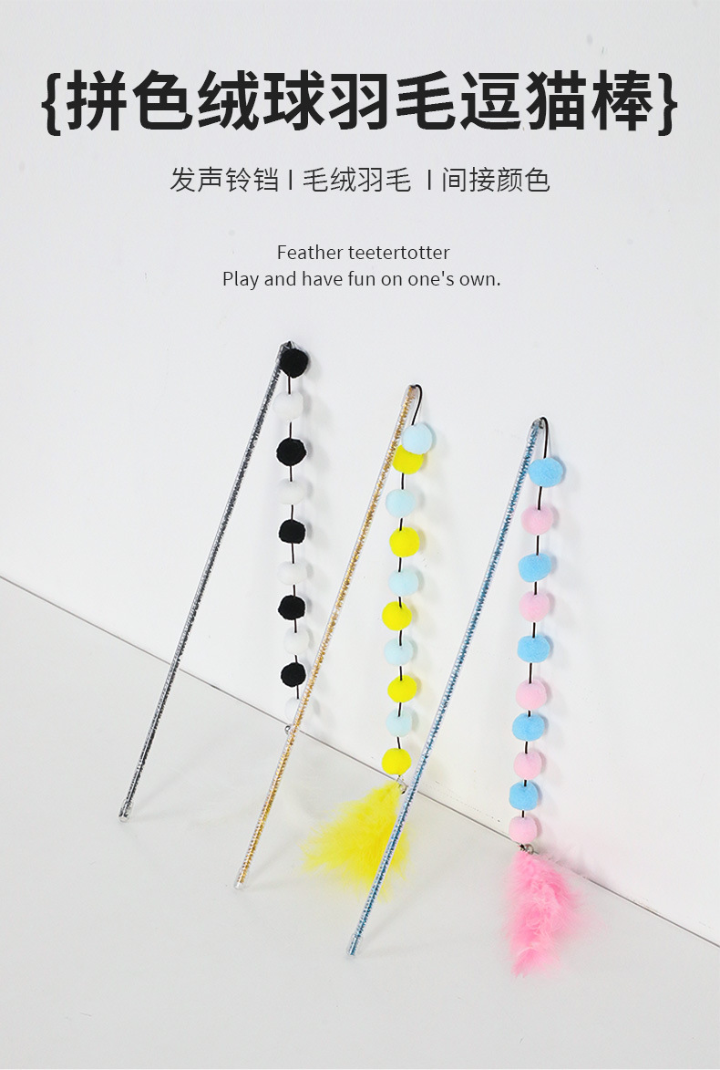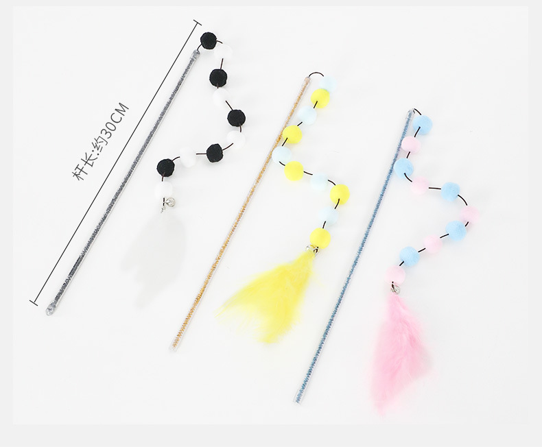 猫のおもちゃ 模造羽根 猫じゃらし マオシンバオ アクリル製ぬいぐるみ タッセル付き カラフルなポンポン ペット用おもちゃ