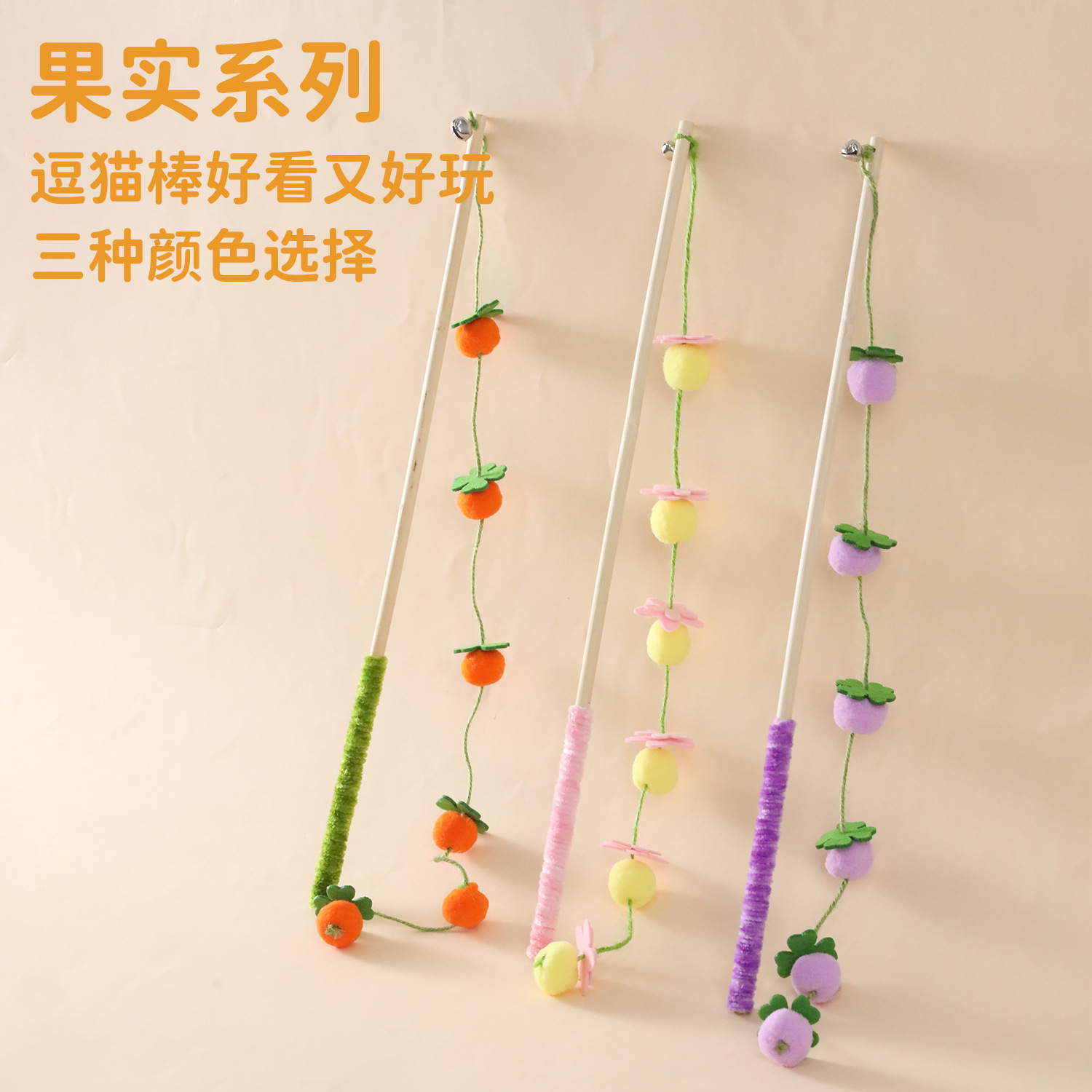 小柿子逗猫棒硕果累累玩具实木长杆耐咬猫咪自嗨解闷神器宠物玩具