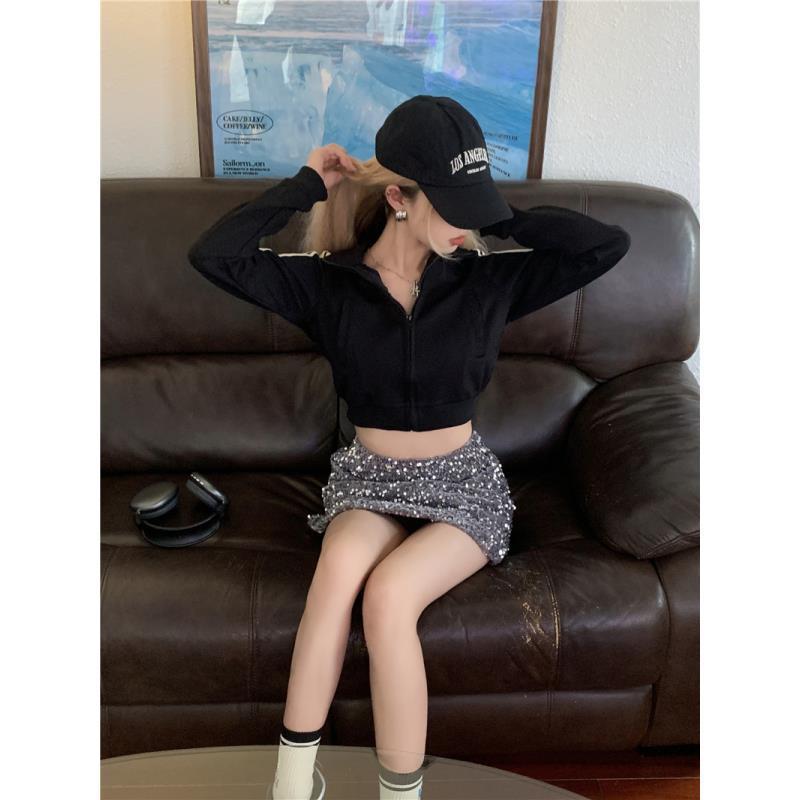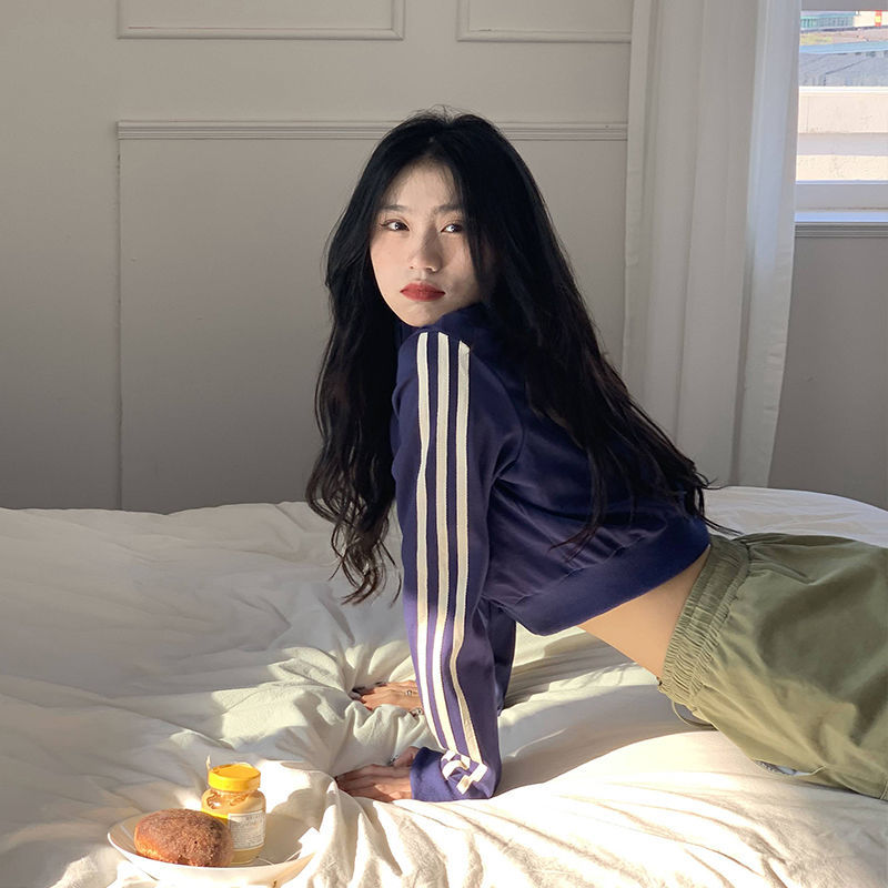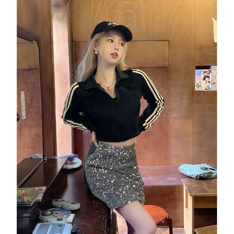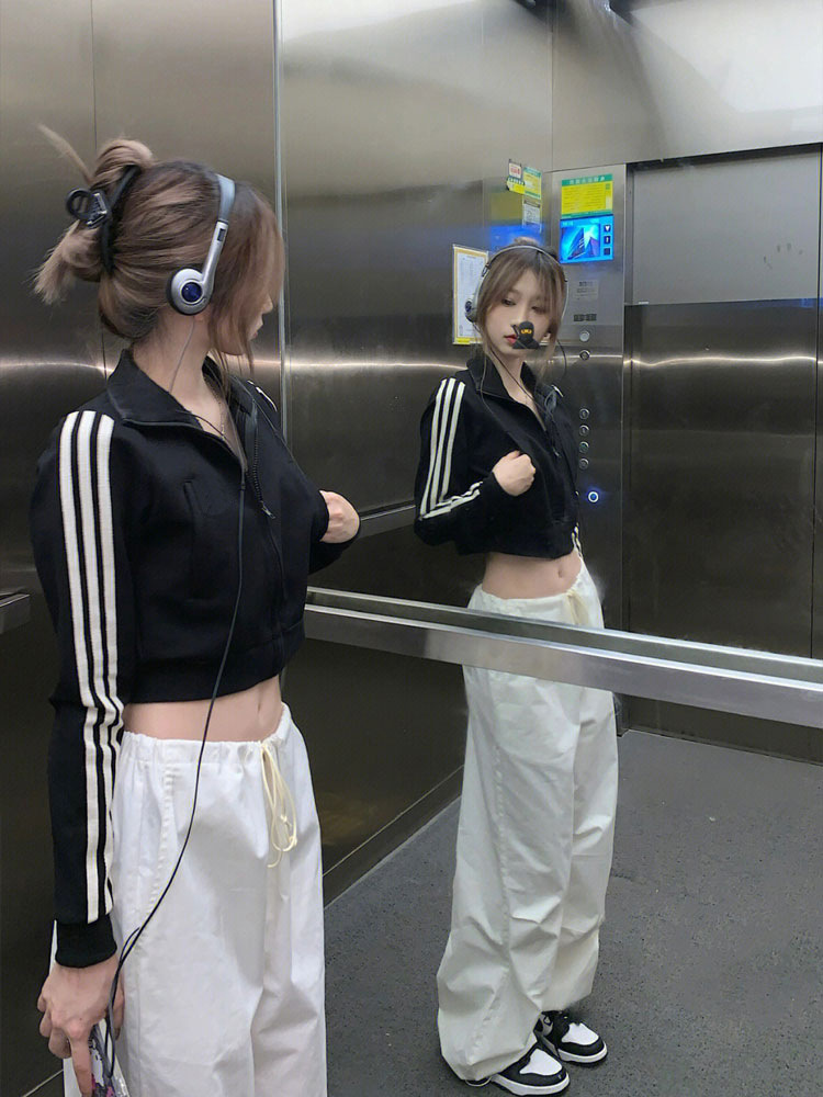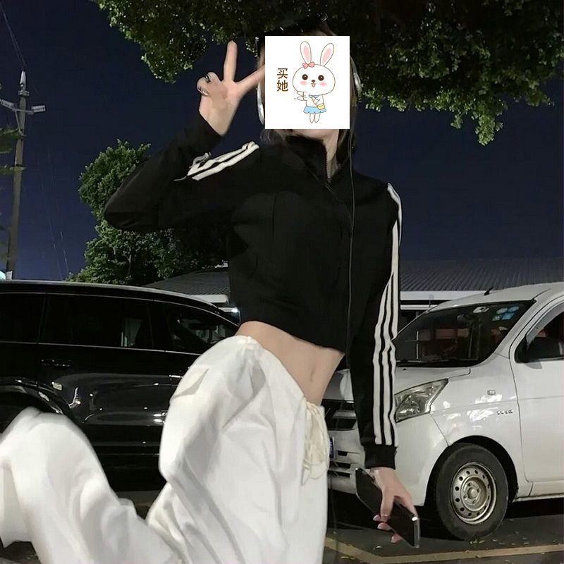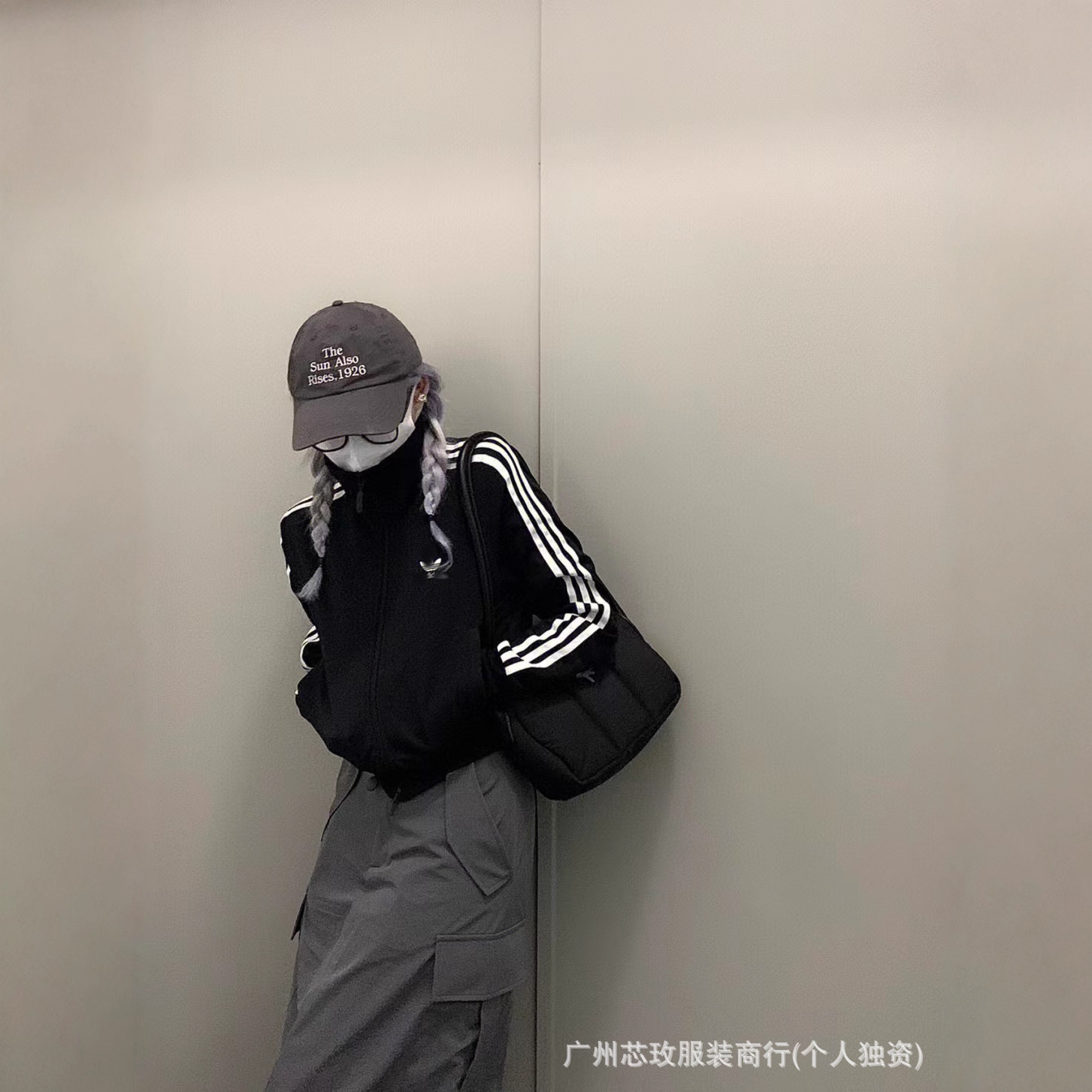 D家正确原2025早秋三条杠运动拉链短款美式复古开衫上衣外套