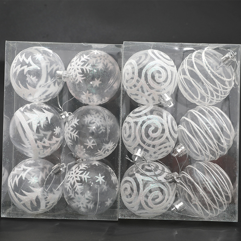 クリスマスツリーのペンダント装飾ボールの白いストライプのスパイラルボールの新しい越境クリスマスボールの透明な白い色のボール