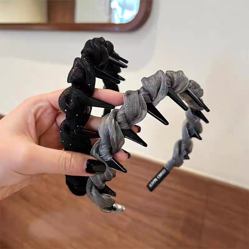 2025年女性ネットセレブ向け植毛編み込みヘアフープ、シンプルな額の高貴なヘアピン、切れ毛整理加工品、気質ヘアフープ