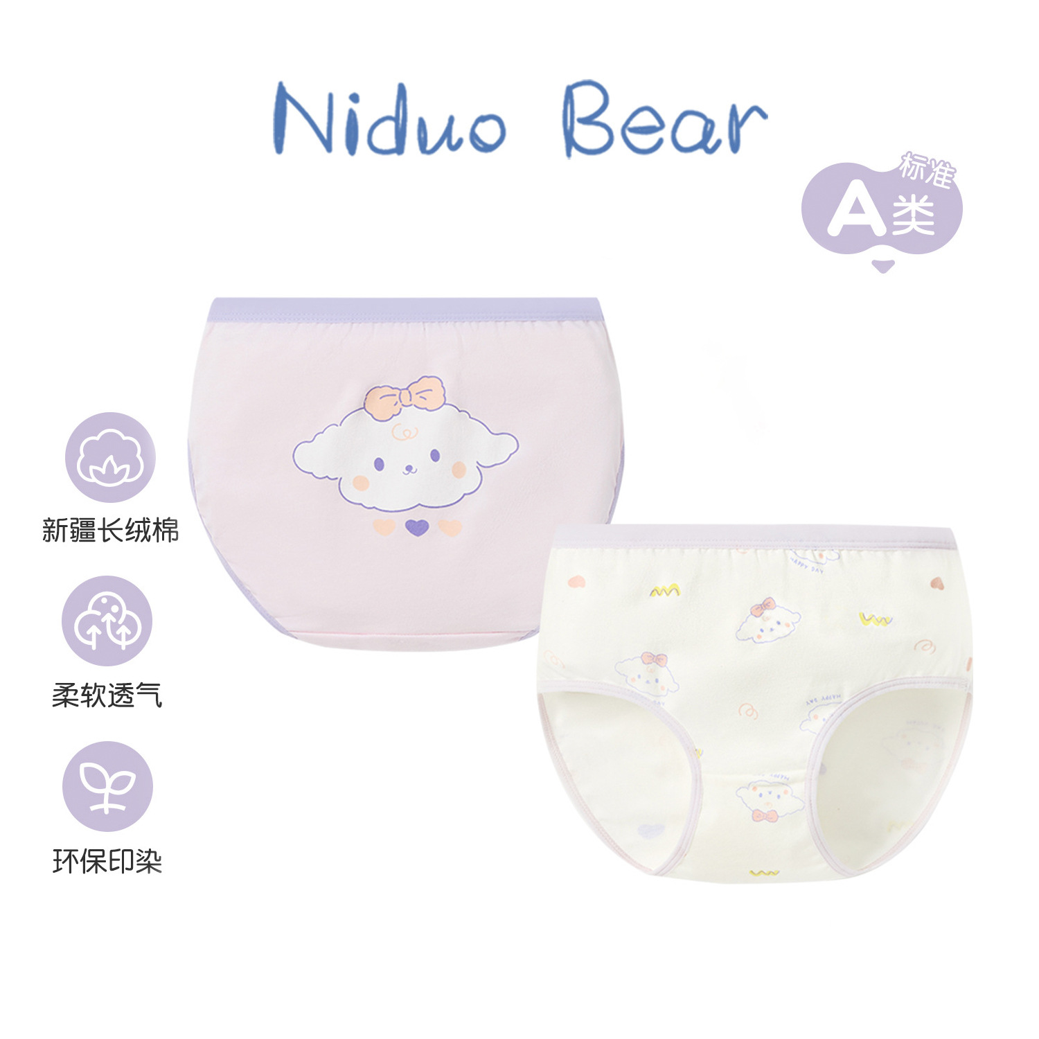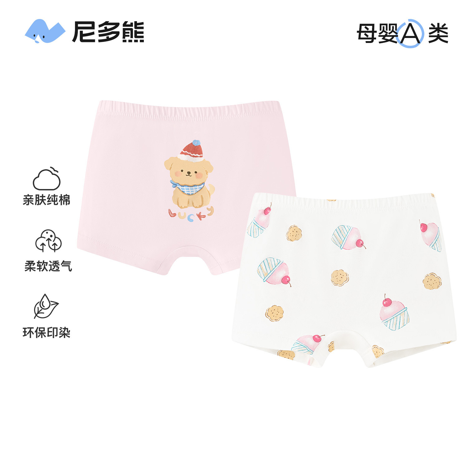 尼多熊女童新款40支抗菌内裤儿童纯棉平角内裤宝宝三角小女孩短裤