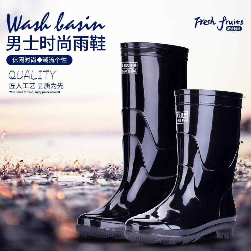 中筒黒雨靴水靴雨靴ゴム靴防水靴カバー靴男高筒女中筒水靴成人保温靴