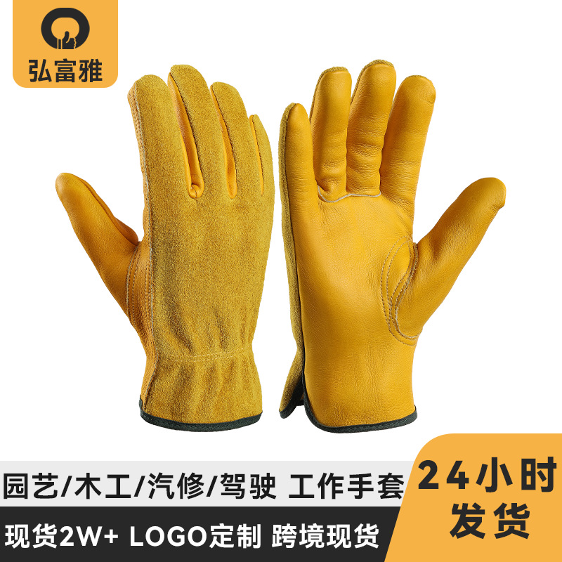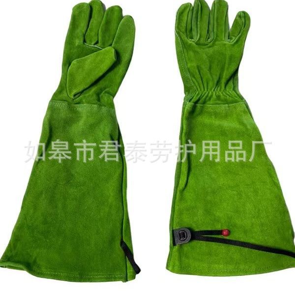皮革園林手袋園芸手袋牛二層皮防刺長袖花園手袋労働保護牛革手袋