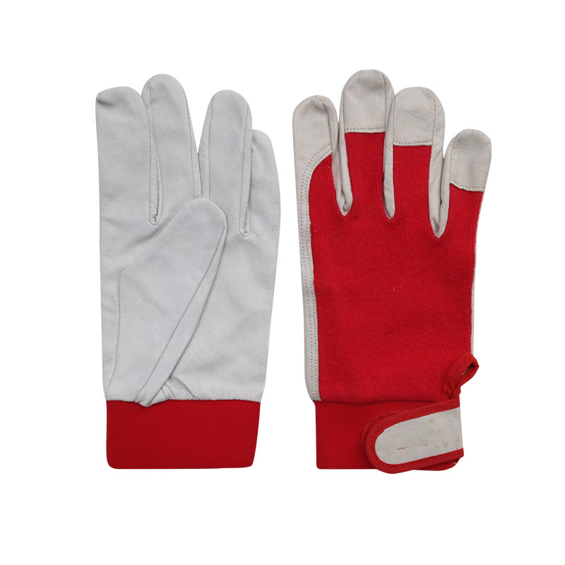 赤布面作業手袋工場人気赤青白黒フルサイズ弾力布羊皮ガーデン手袋
