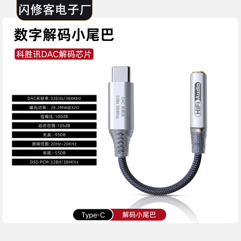 電気商の人気HiFiデジタルデコード耳置きtype-C回転3.5mm中継dacは通話聴歌をサポートしています。