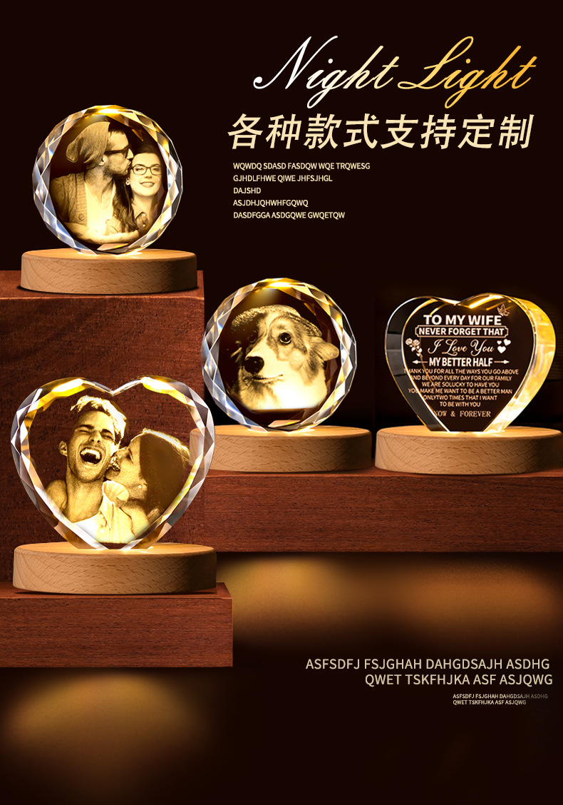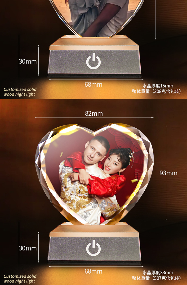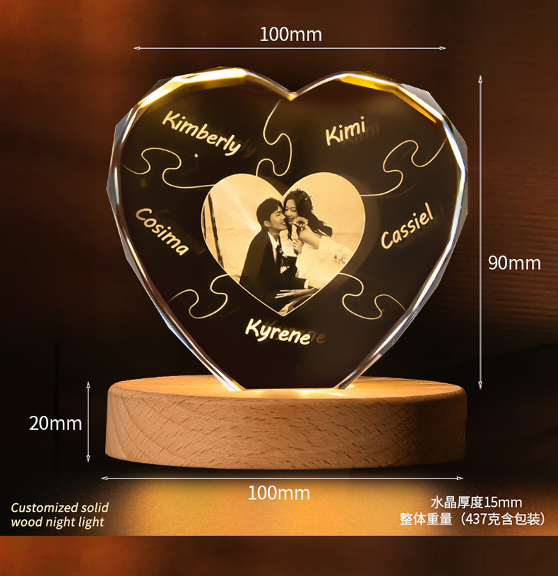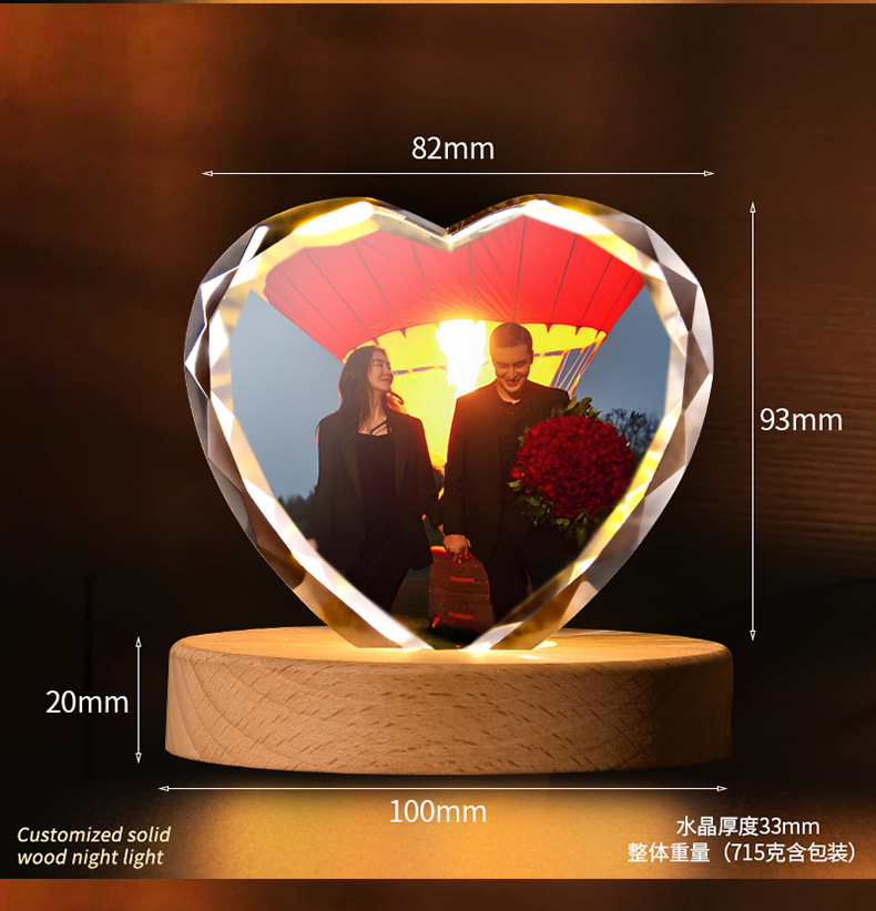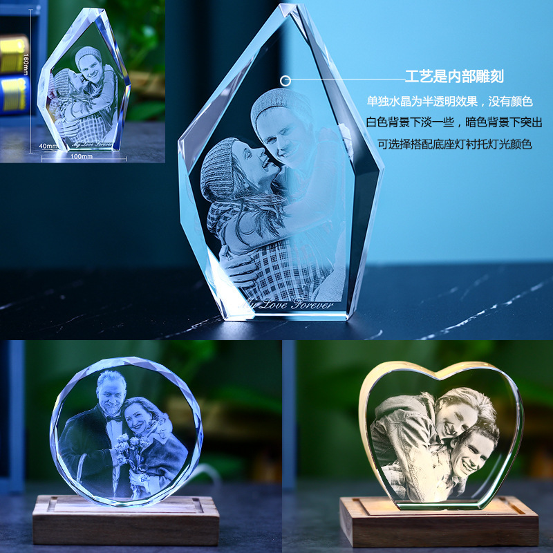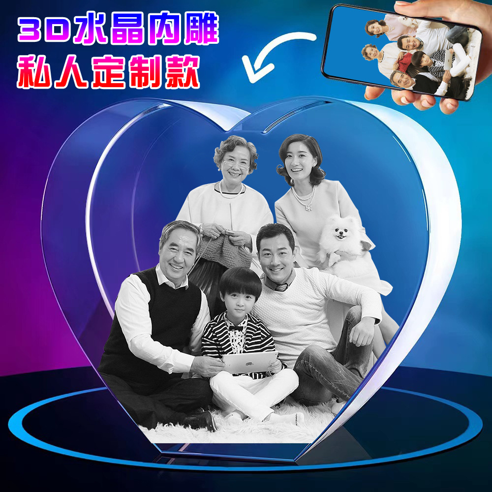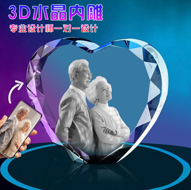 クロスボーダー水晶3d写真柄ハート型レーザー彫刻内彫刻置物結婚誕生日記念品プレゼントクロスボーダー