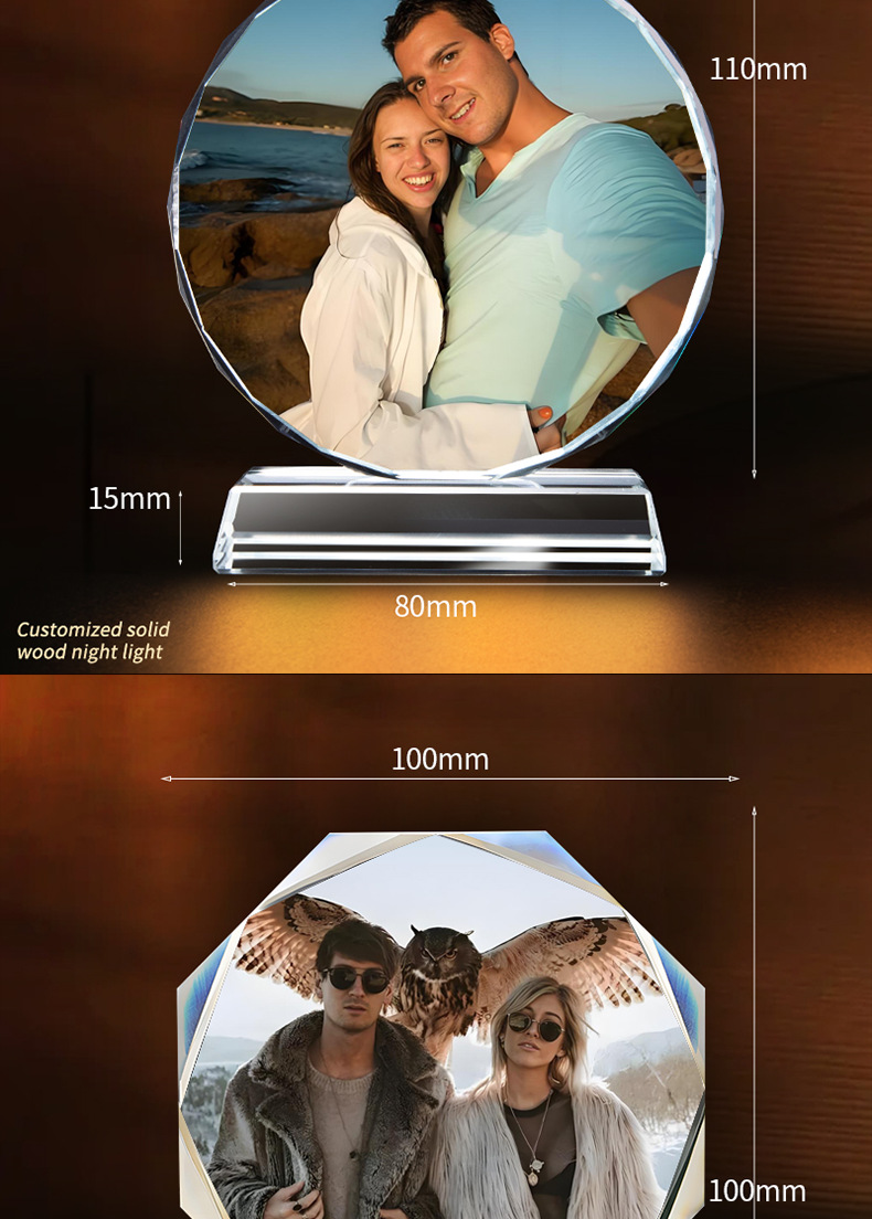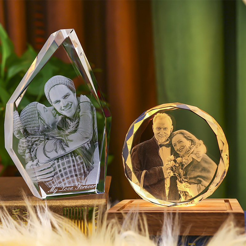 クリスタル内部彫刻写真ギフト 3D 海外のお客様、男性、女性、友人、家族、恋人、記念日、白水晶