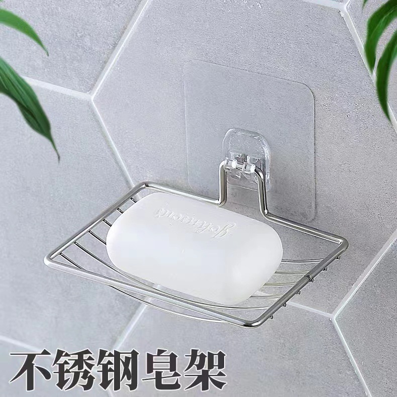 免打孔不锈钢肥皂架香皂盒壁挂吸盘式卫生间洗手台浴室沥水置物架