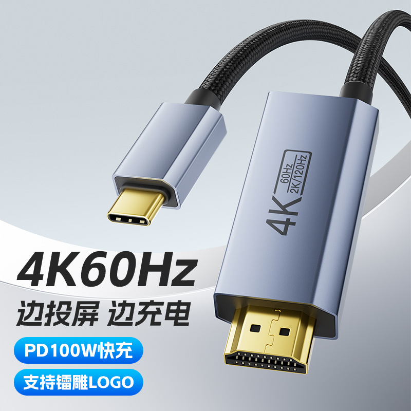 Type-C转HDMI投屏线手机平板笔记本电脑转接电视同屏线PD快充供电