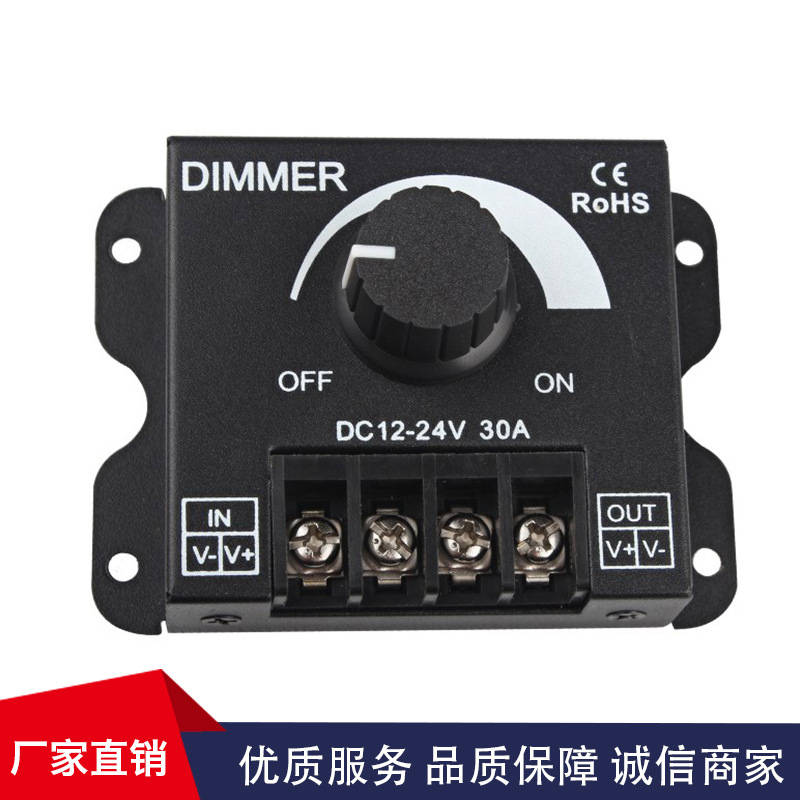 蓋付き、黒ノブ30A調光器DIMMERノブスイッチ12V/24V