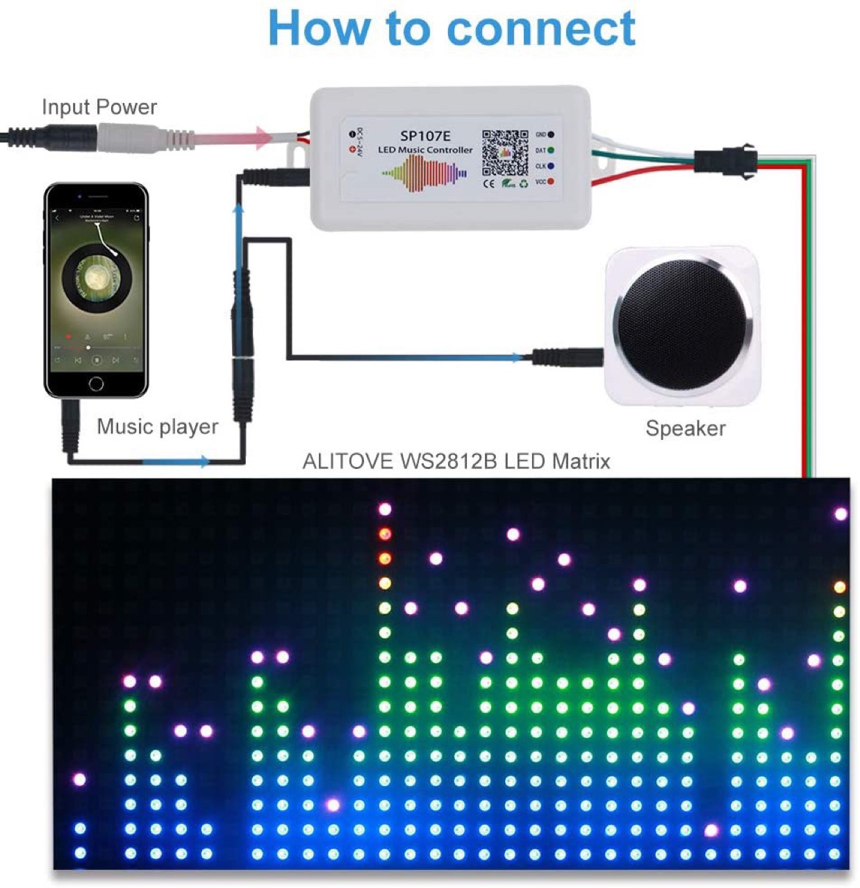 SP107E智能LED蓝牙音乐幻彩全彩灯带2811/2812控制器DC5-24V