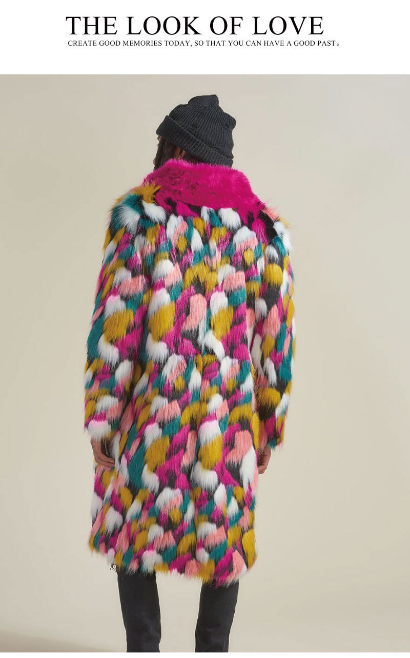F1010欧美跨境男士仿皮草翻领外套外贸秋冬新款彩色保暖大衣男