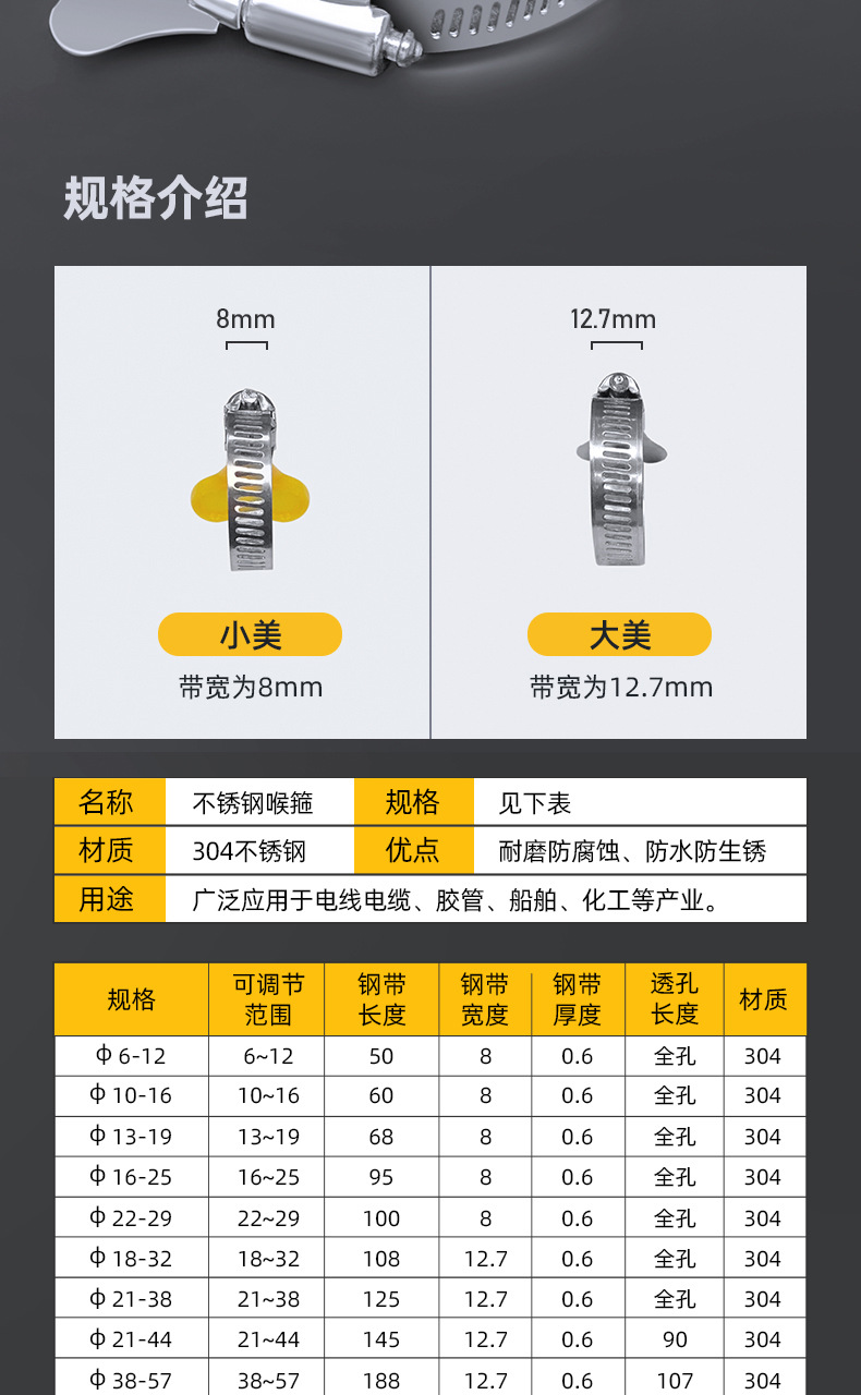 工場販売201304アメリカ式喉頭フープステンレスフープホース水管継手管クリップフープ