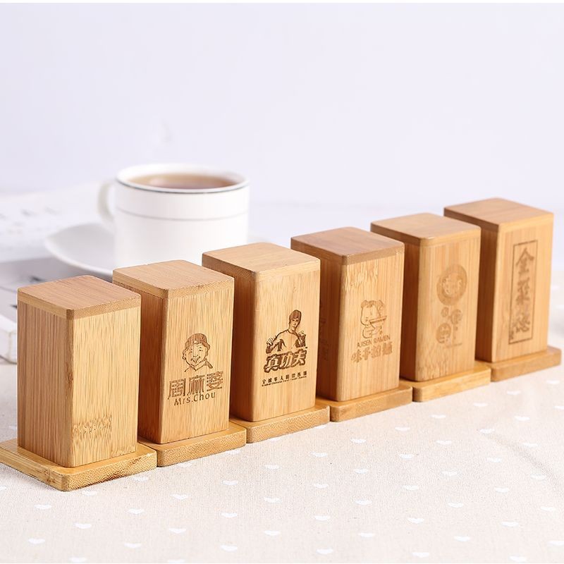 楊枝箱創意彫刻ロゴ竹製楊枝桶ホテル現代飲食彫刻楊枝筒楊枝缶プリント