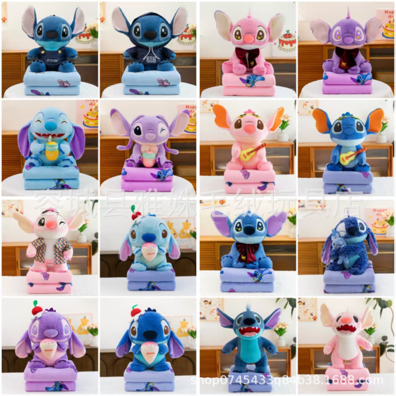 背带卫衣史迪仔抱枕毯子二合一卡通午睡毯子空调被两用毛绒玩具